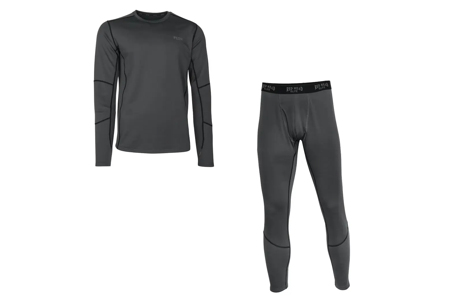 | RedHead Elite Midweight Base Layer | $50 top, $55 bottom | 94% polyester, 6% spandex | 4MOST Inhibit treatment fights odors | Midweight |