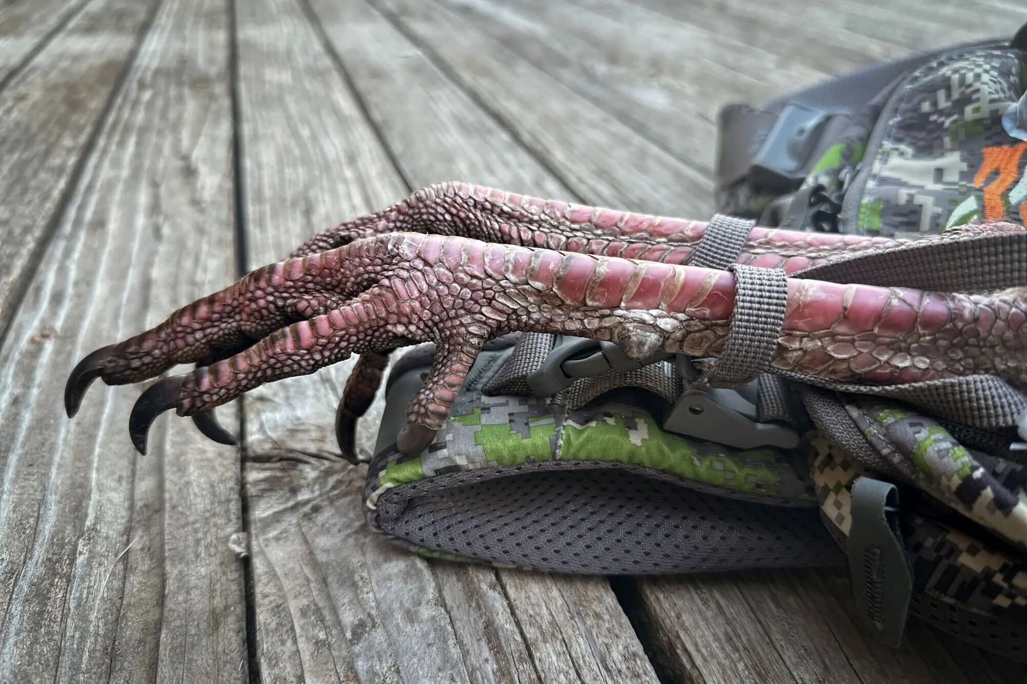 A game bag is helpful after a successful hunt because it puts the weight of the bird on your back rather than having to sling it over your shoulder. If you’ve got a couple-mile walk back to the truck, a 16-pound bird can really start to become cumbersome. One of our favorite vests, the First Lite Treeline, provides both a backpack and a game bag, giving you the benefits of both.