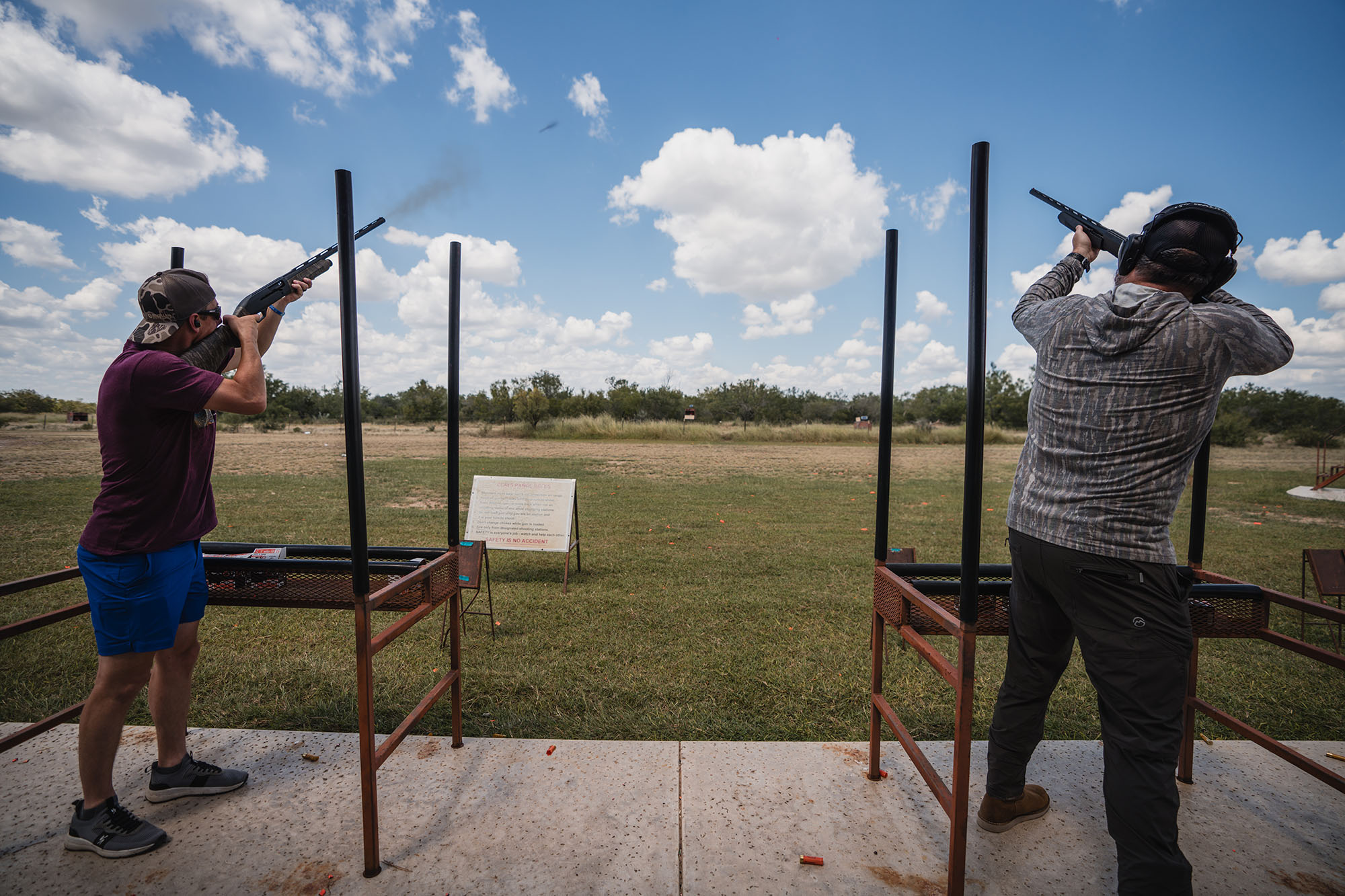 Once we made our way to the range, the real impressions started. We shot clays, swapped guns, tried a few trick shots for fun, and spent enough time behind the Vector and the Drive to get a feel for how they handle. Both shotguns felt higher quality in hand than I expected. The actions ran clean, the controls made sense, and the guns mounted without any awkwardness.