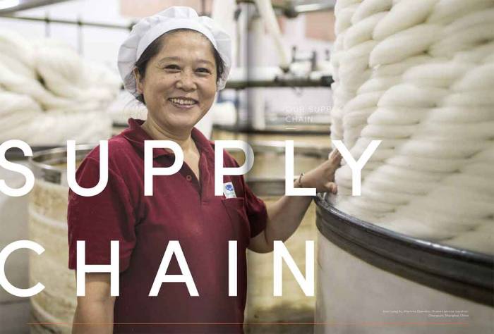 For example, look at page 56. There, the report shows the seven stages of its supply chain. This includes procurement of wool fibers from the sheep in New Zealand; processing and yarn spinning in China, Italy, and Bulgaria; fabric production; garment assembly; distribution; and, finally, e-commerce structures and product in retail stores.