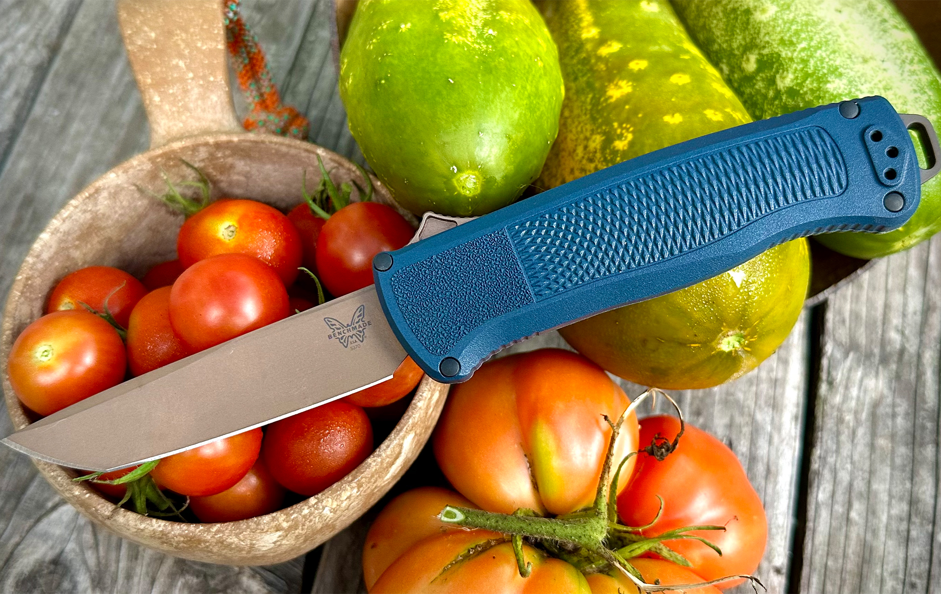 Due to its slender profile and razor-sharp edge, the blade turned out to be awesome for slicing up veggies. The hot and humid weather in New England resulted in some serious garden growth. In the month I tested the Shootout, I brought in three to four cucumbers a day and twice as many tomatoes.