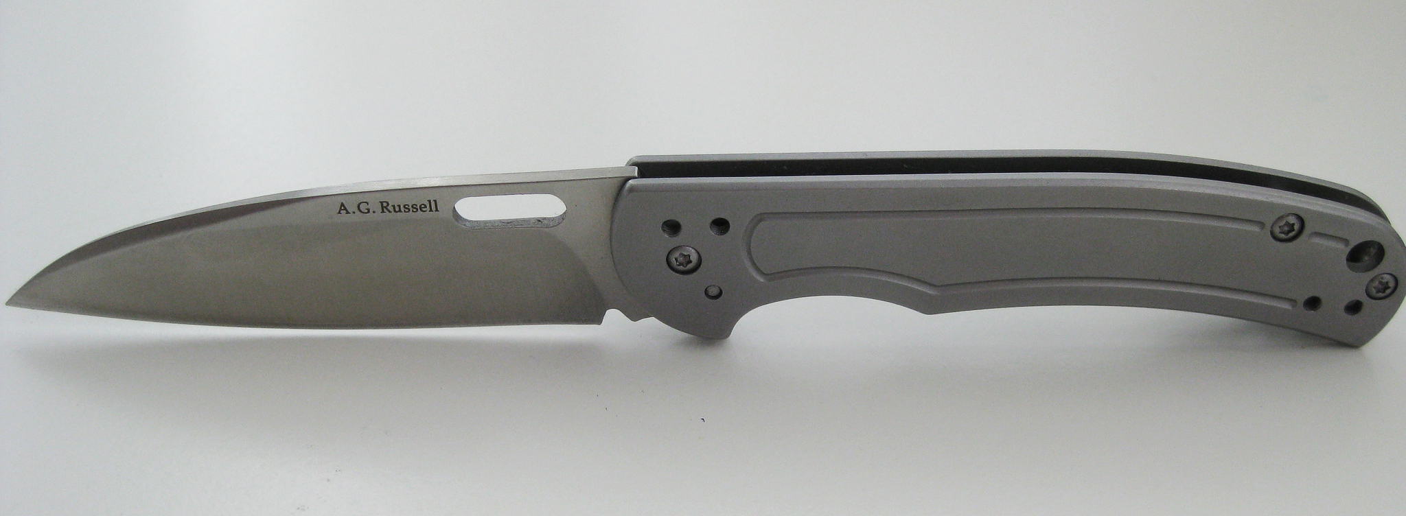 This steel framelock flipper is a sweet little blade. Russell pocketed out the steel to make it lighter than normal. And he did his usual voodoo to create a stupendous blade-to-handle ratio.