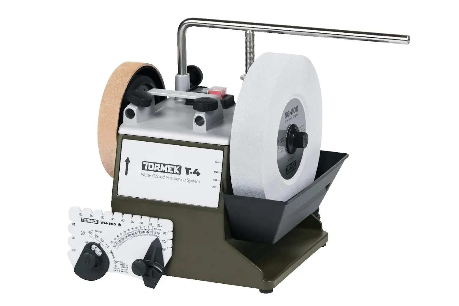 On the other end of the scale are powered grindstones. Although there are some systems like the Tormek T-1, which are meant to be used dry, the majority of grinding systems meant to be used for sharpening are water-cooled, like the Tormek T-4.
