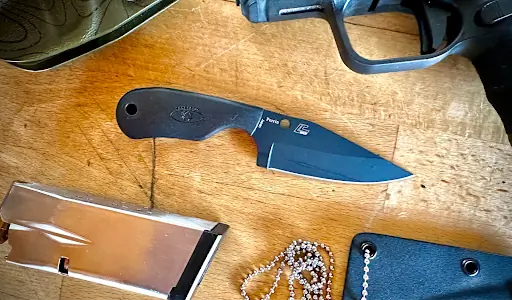 With tactical knives, carrying them is all about ease of access. It’s also about concealment. A neck knife like the Spyderco Subway Bowie excels at both. But so does a big behemoth like the Sniper Bladeworks MAMU which can be worn horizontally across your back and concealed by your shirt.