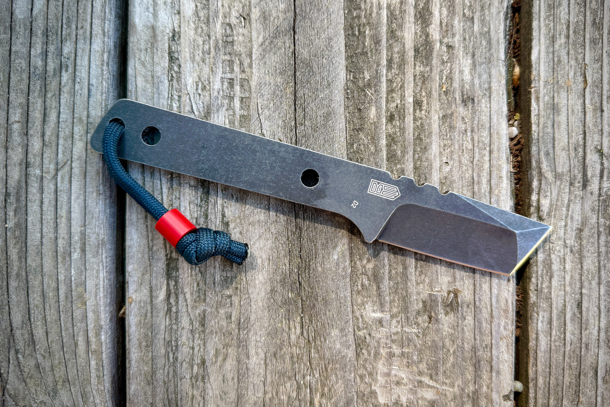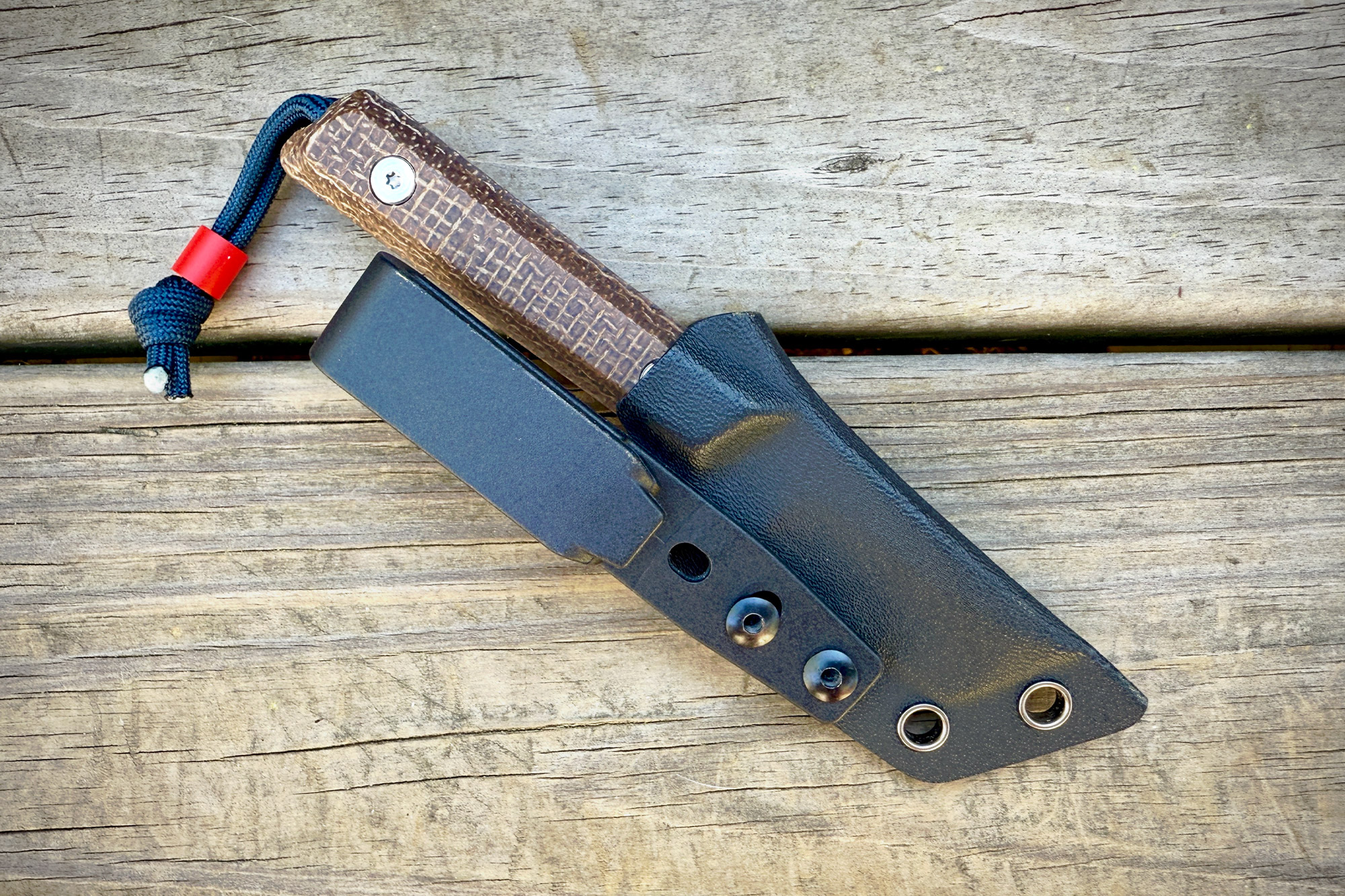 I used a simple paracord and a G10 collar bead for the lanyard. The knife needs to be taken apart to add the lanyard, even though there’s a cutout in the Micarta for it. I can attest that there’s a solid slab of D2 under those scales. That said, I get a lot of guff for my love of lanyards, but they make retrieving knives, especially out of Kydex sheaths, much easier.