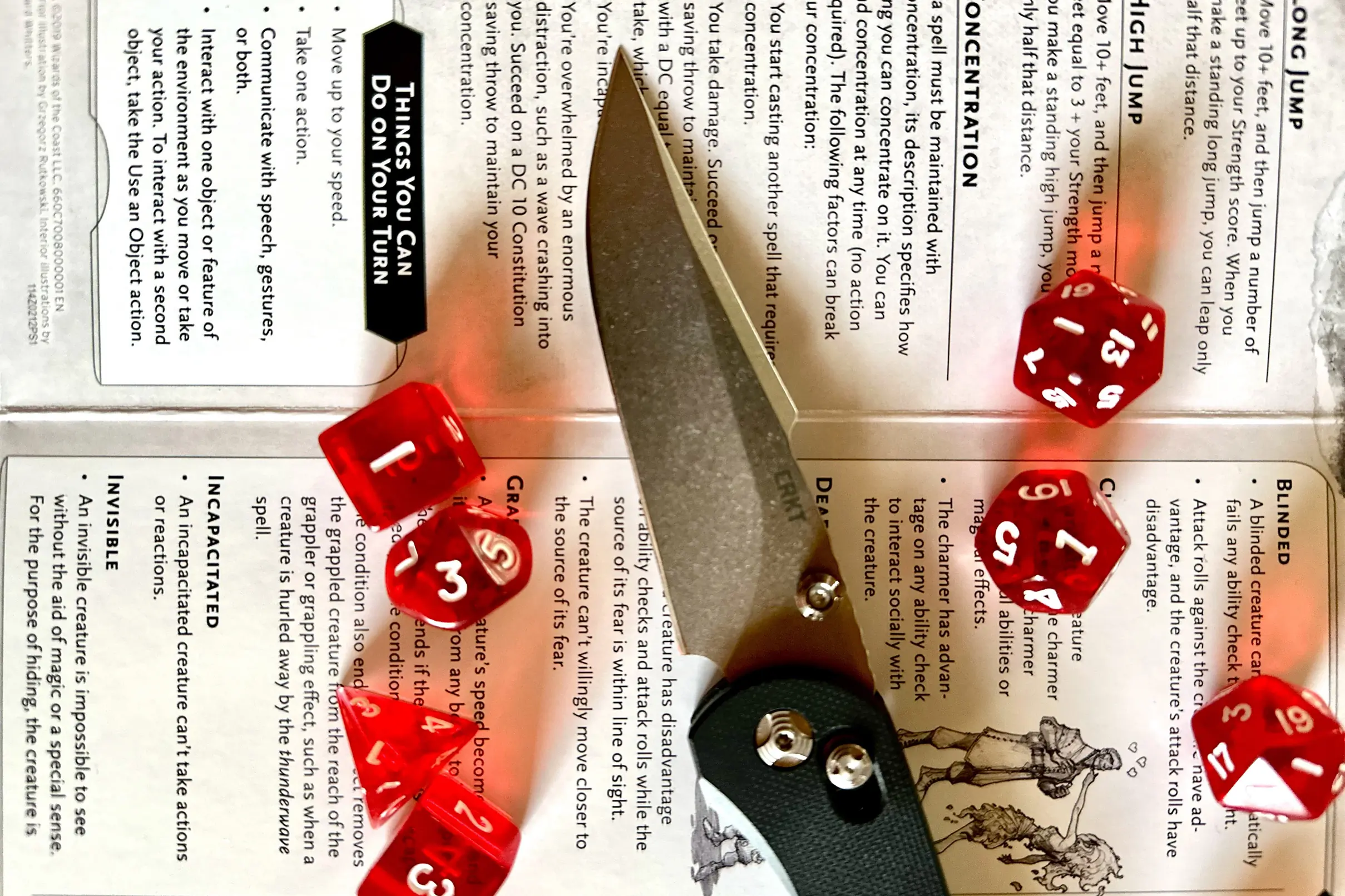 I’m a very traditional knife person, but here I was enchanted by a knife that could come with a D&D Dungeon Master’s Guide.