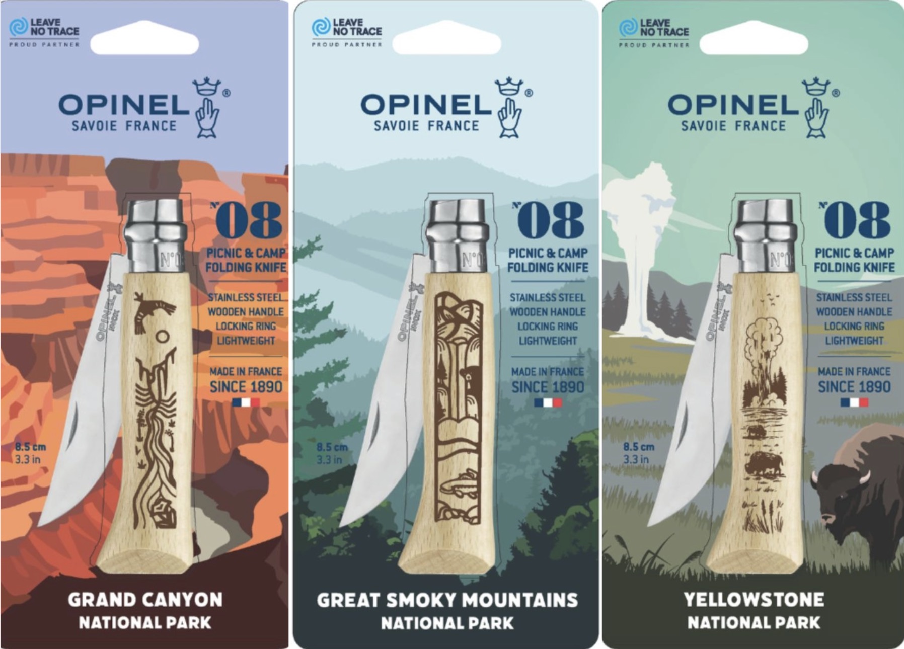 Opinel National Parks Collection: No.08 Knives Honor 3 Parks
