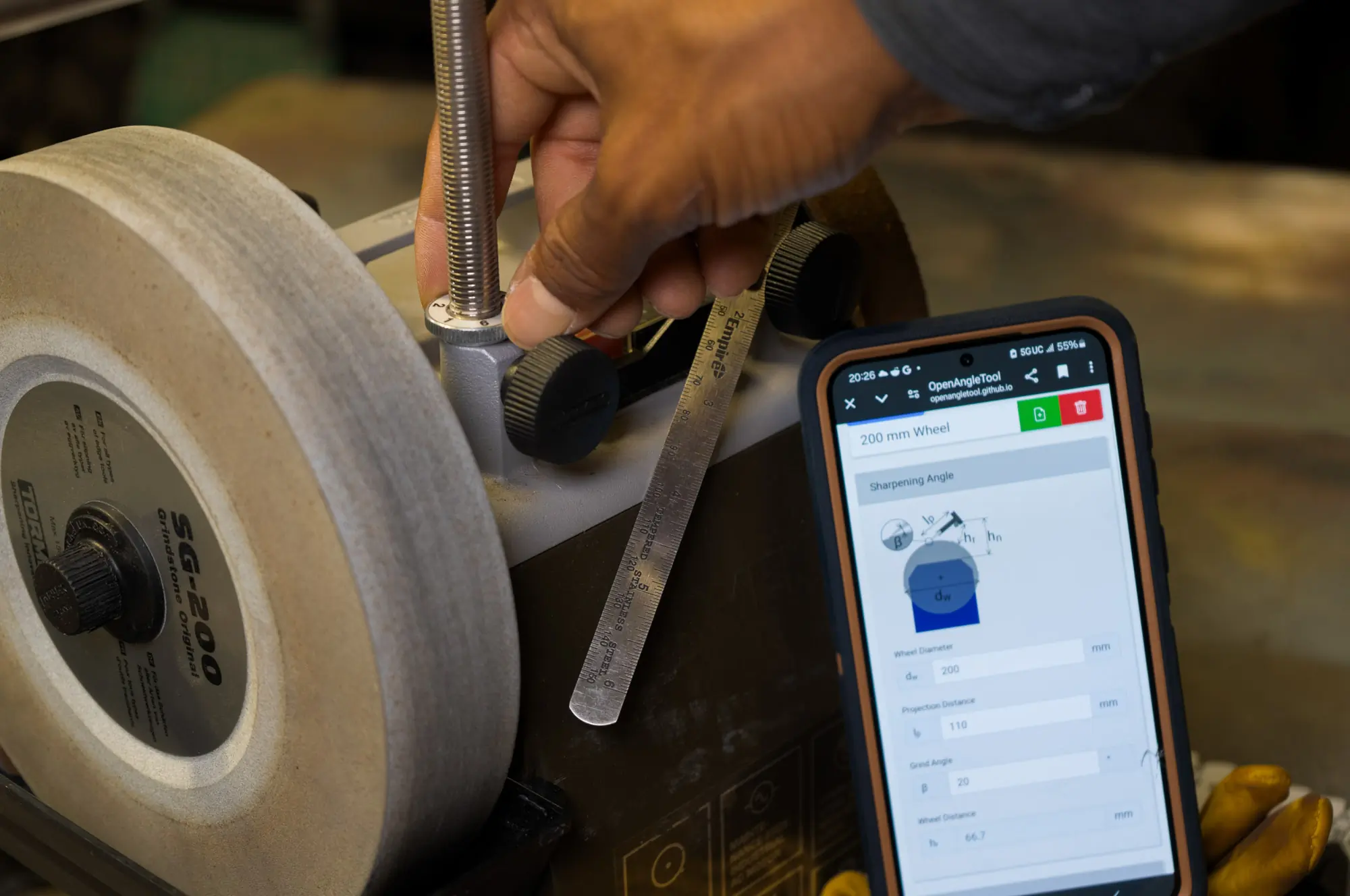 While matching the existing angle is simple enough, selecting a different one is where things get complex. Sharpening on a wheel, instead of a flat surface, does come with some peculiarities. The biggest one is figuring out what angle you’re grinding at.