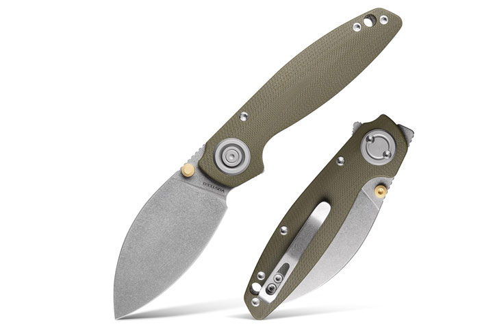 For the Shilin Cutter, Vosteed found a balance between materials and aesthetics that aids in the overall function and appeal of the knife. Available in 10 different variants, this version boasts stonewashed 154CM steel and green G10 handle scales.