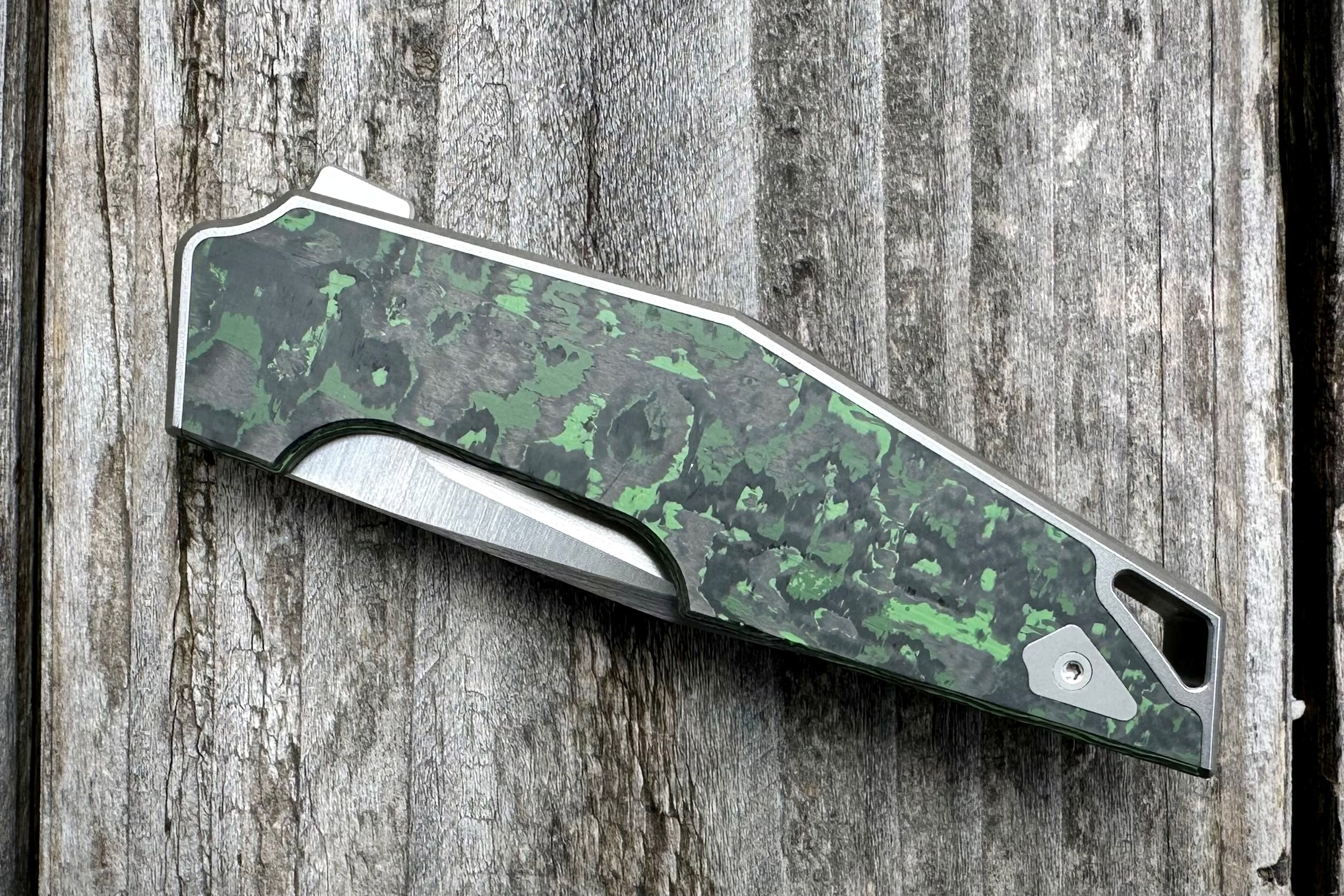 But here we are. The One and Only (OAO) flipper uses premium CPM 20CV blade steel and 6AL4V titanium scales with Jungle Wear Fat Carbon Inlays. This version of the OAO is actually one of four knives in a series that starts just above $500 and tops out around $700.