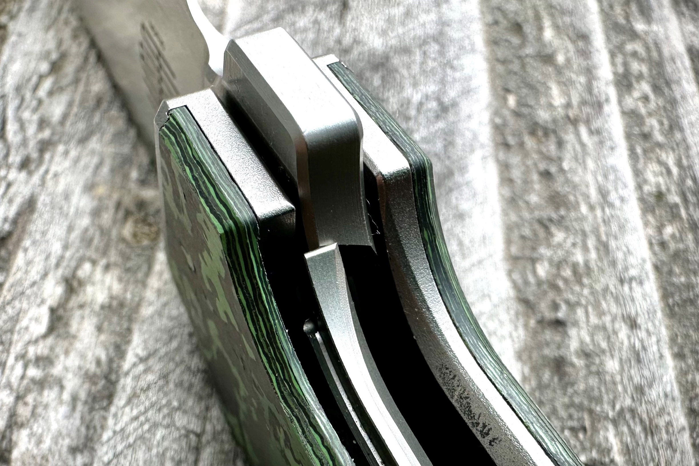 The next crucial aspect of the OAO is the blade material. CPM 20CV is an ultra-premium stainless steel. Though MagnaCut has slightly better corrosion resistance than CPM 20CV, its edge retention and toughness far surpass that of MagnaCut. It’s a nice choice for a knife like this, as it gives an air of opulence.