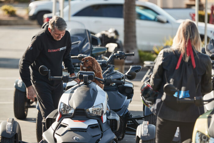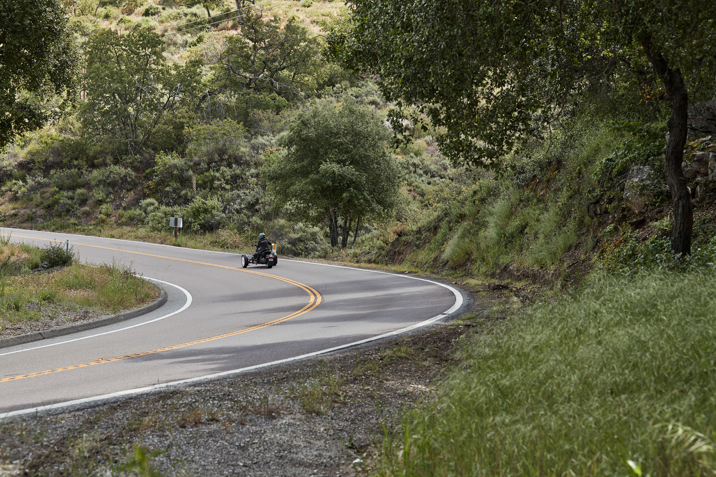 I’m surprised when the group leaders take us straight from the dealer lot onto the freeway. Some of us have never ridden three wheels before. As it turns out, it is that easy to ride a three-wheeler. Aside from a few rear-wheel squeals, we’re off and already looking like pros.