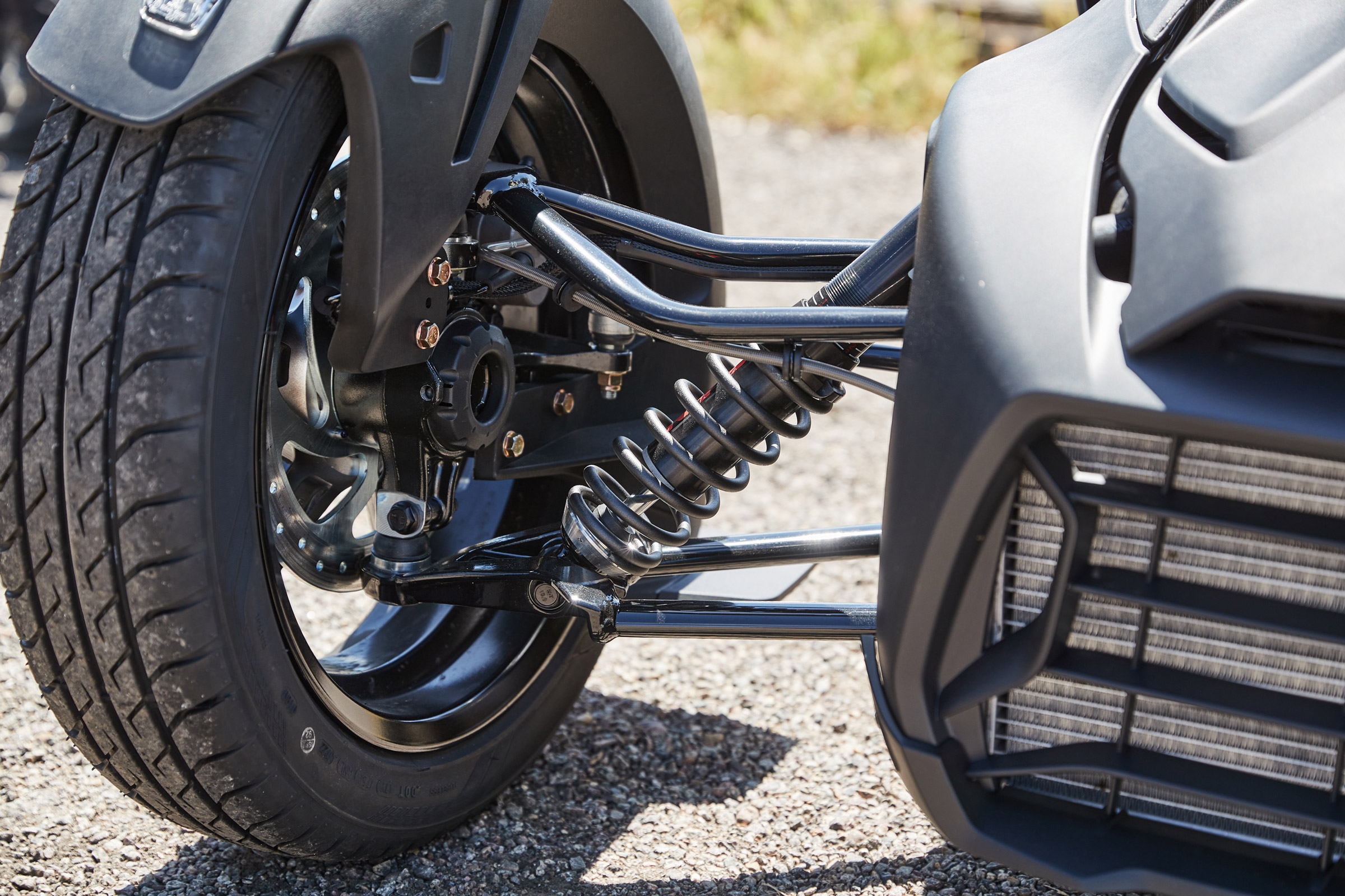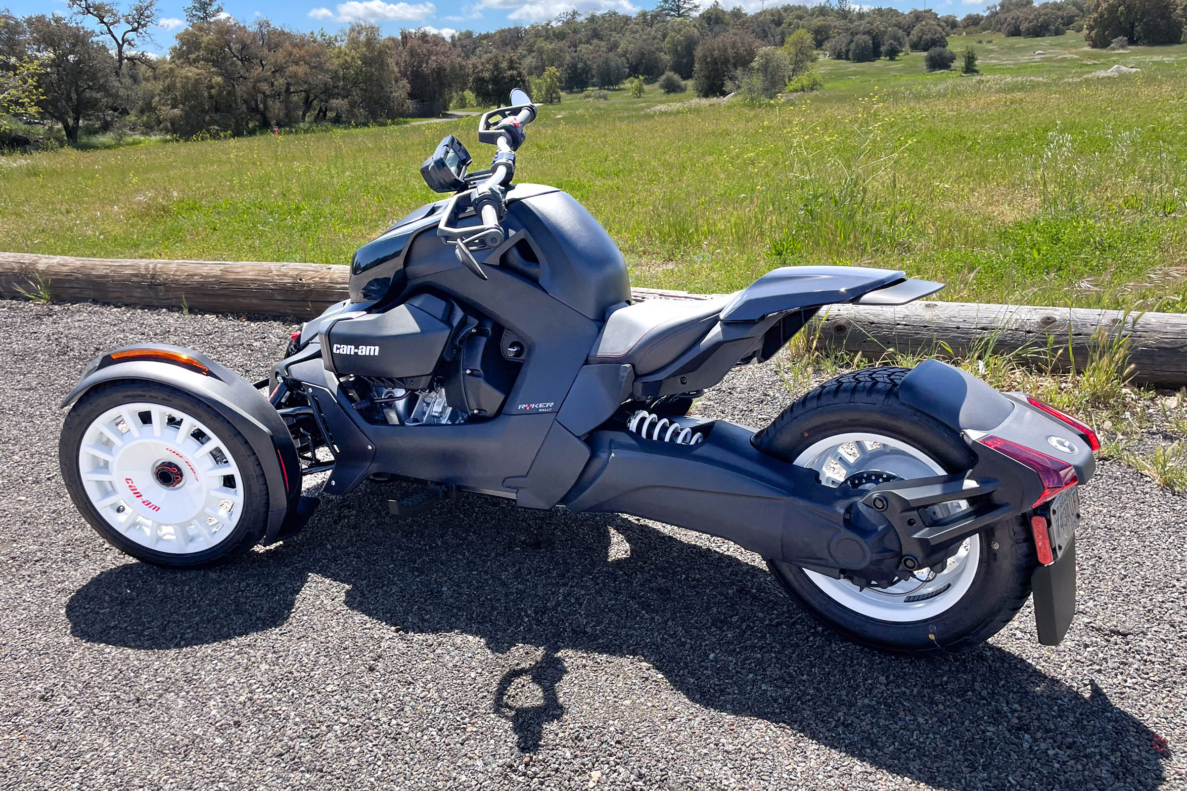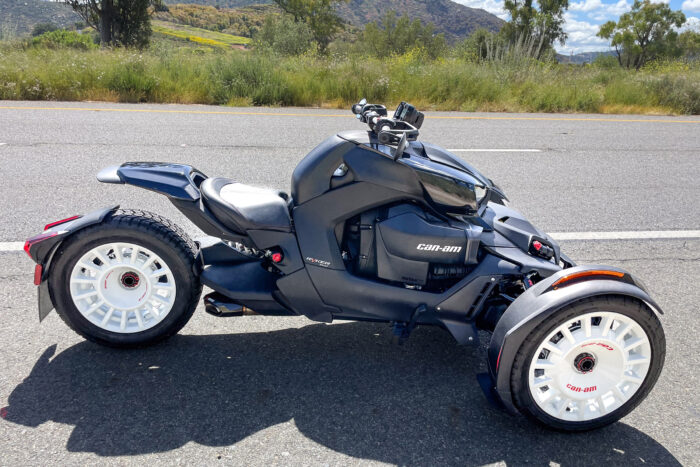 One thing I don’t get used to during the 150-mile ride is where to position the Ryker’s tires when there’s an obstacle in the road. With two wheels up front, I naturally go to straddle a rock on the tarmac but feel the kick when my rear wheel catches it and spins off.
