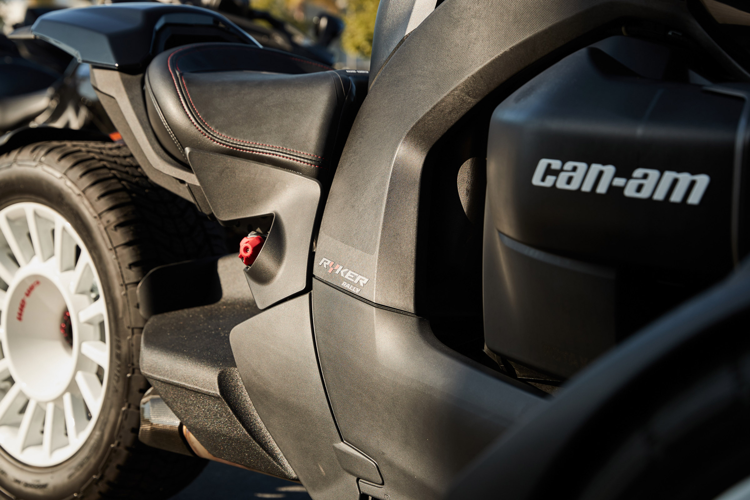 After 150 miles on a motorcycle, I’d be feeling it in my butt and low back. Not the case on the Ryker, with its toolless seating options and Rally comfort seat.