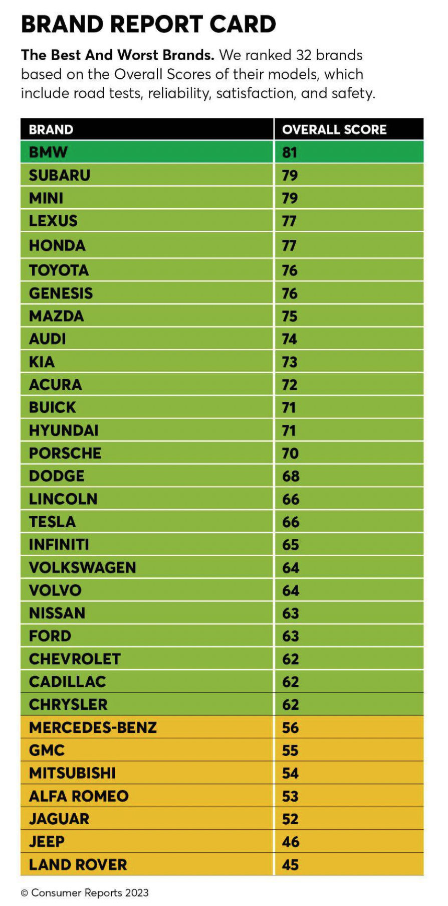 Not for all manufacturers, however. BMW, which was a pioneer in onboard electronics, ranked as the number one brand in Consumer Reports’ 2023 Automotive Report Card Rankings.