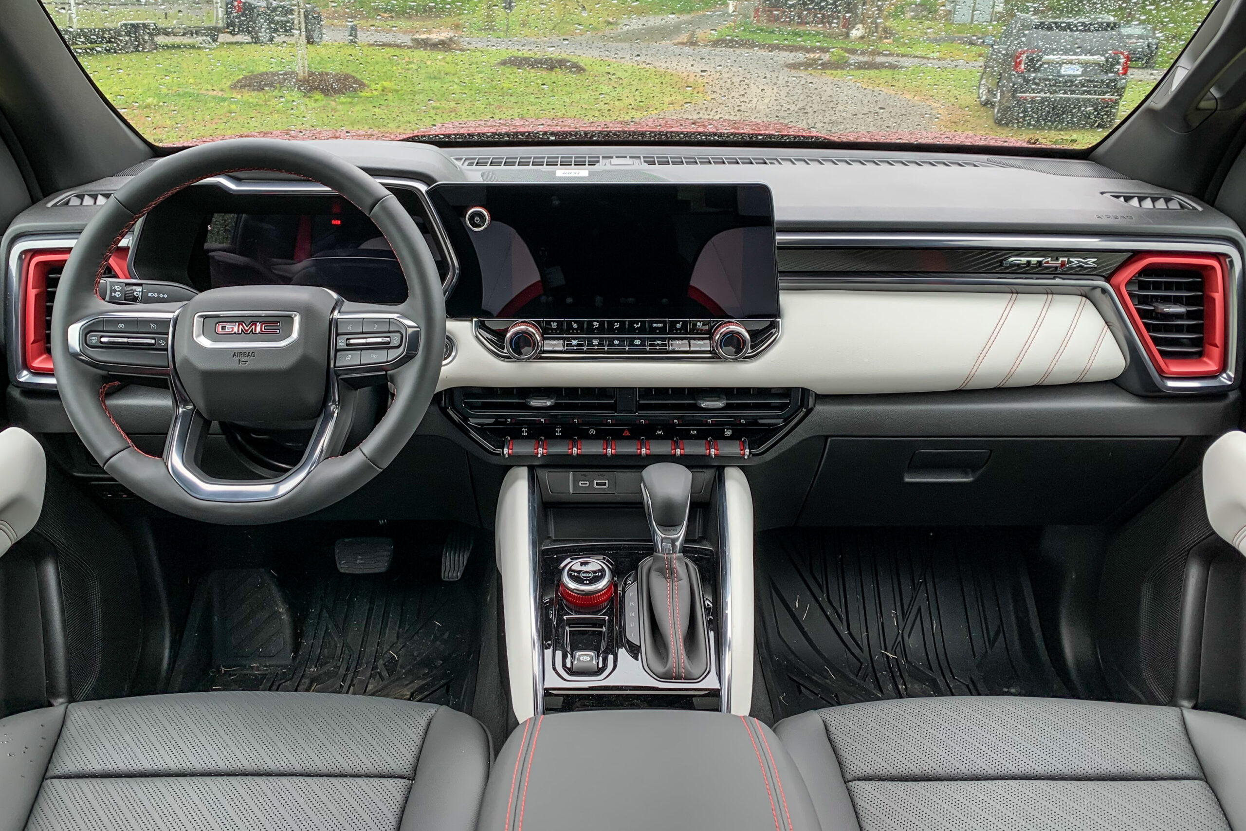 GMC bolted up an eight-speed transmission to the longitudinally mounted engine. In the base Elevation trim, you choose between a rear-wheel-drive or four-wheel-drive system. In the AT4, Denali, and AT4X trims, it’s four-wheel-drive only. Fitting, since GMC is decisively pulling the Canyon lineup toward off-road prowess.