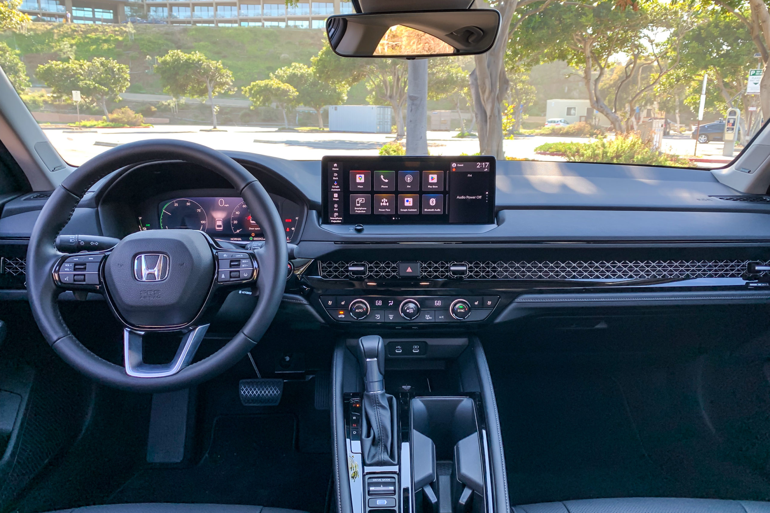 It’s not totally barren on sub-Touring Accords, mind you. Honda installed a super-wide, 12.3-inch center console touchscreen on all four hybrid trims (Sport, EX-L, Sport-L, and Touring), which includes wireless Apple CarPlay and Android Auto. The LX and EX make use of a 7-inch screen with wired versions of the above. And every single Accord gets a fully digital — and customizable — instrument cluster as well as at least two USB type-C charge ports.