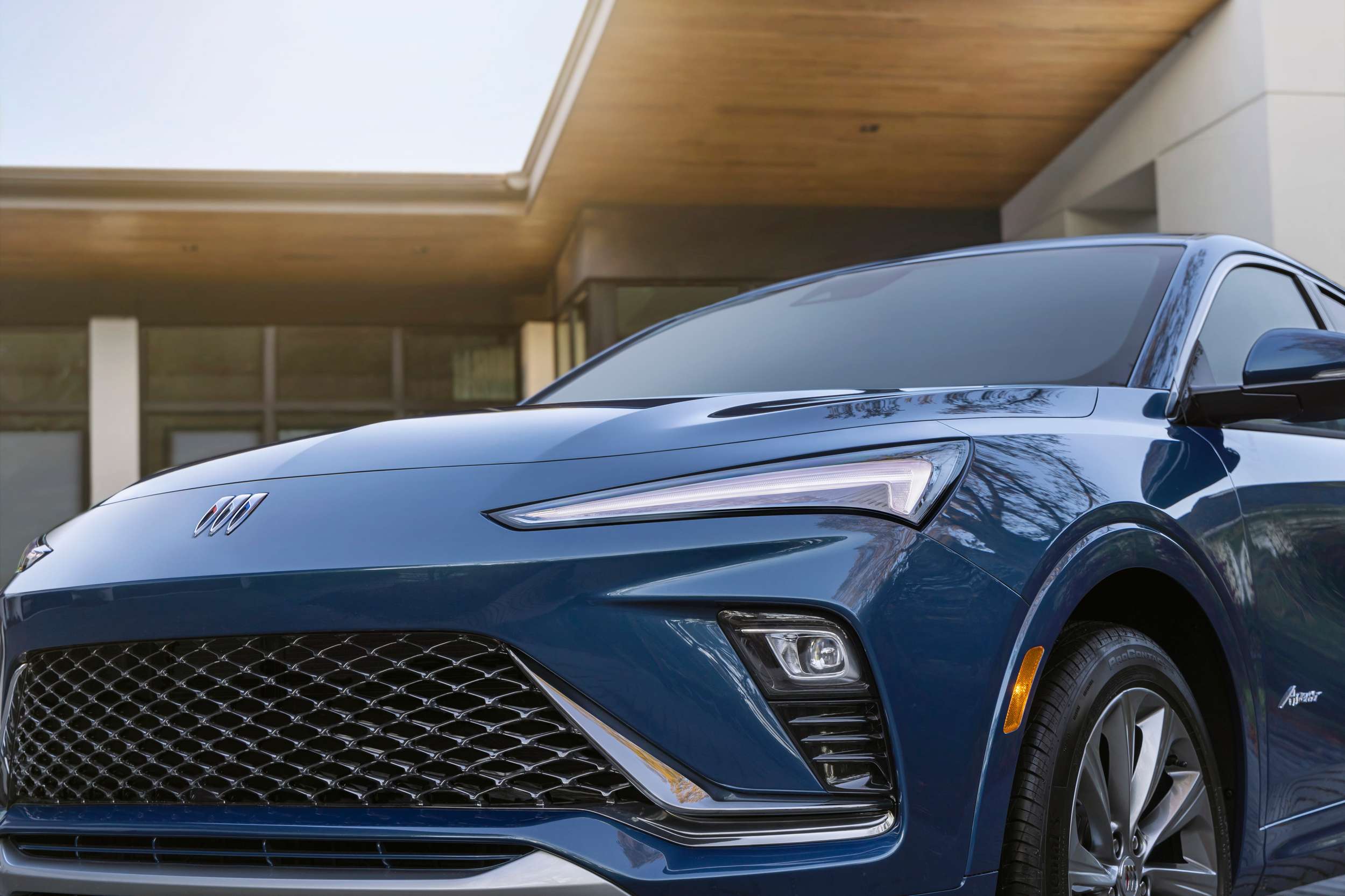 The Envista, like the refreshed Encore GX, gets styling inspired by the Buick Wildcat electric concept. The slim headlights, forward-leaning nose, and the new Buick logo are all part of it.