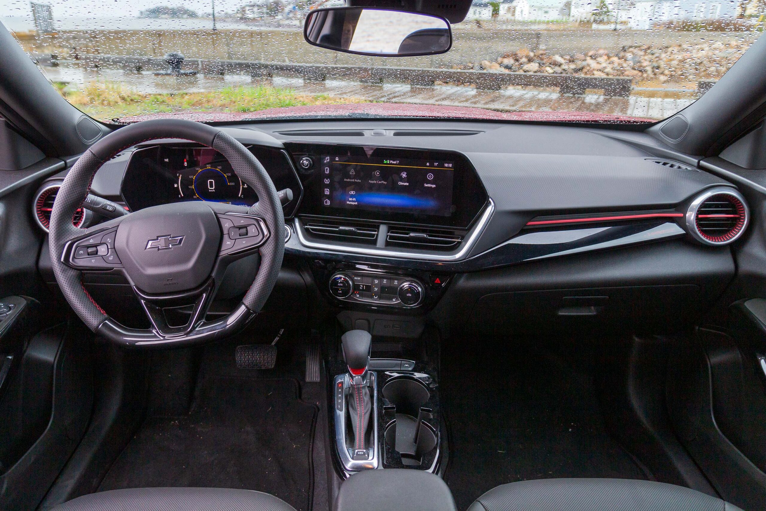 Plus, Chevrolet has added plenty of in-cabin flourishes. Lower trims get blue accents and a textured dash applique while RS grades get red trim and Activ has that acid-yellow piping along with your choice of black or light gray inlays on the dash or doors. The color change applies even inside the vents, and it makes this little crossover feel more fun.