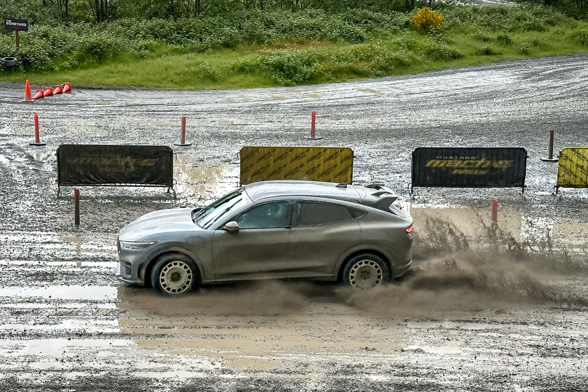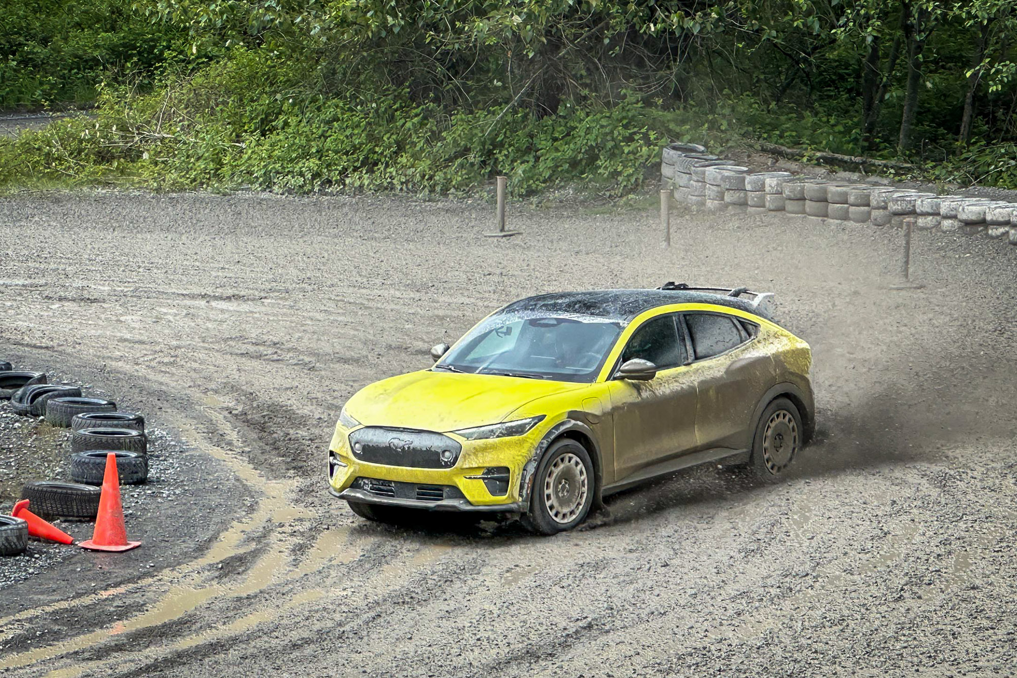 If anything, the Rally edition takes the Mach-E GT to new levels, its standard performance upgrade kicking in another 100 pound-feet to what was already an impressively torquey twin-motor package. Add a new RallySport setting to its Driver Mode selector, and it’s more than up to sort of challenges I faced on the mud-and-gravel track at Dirtfish.