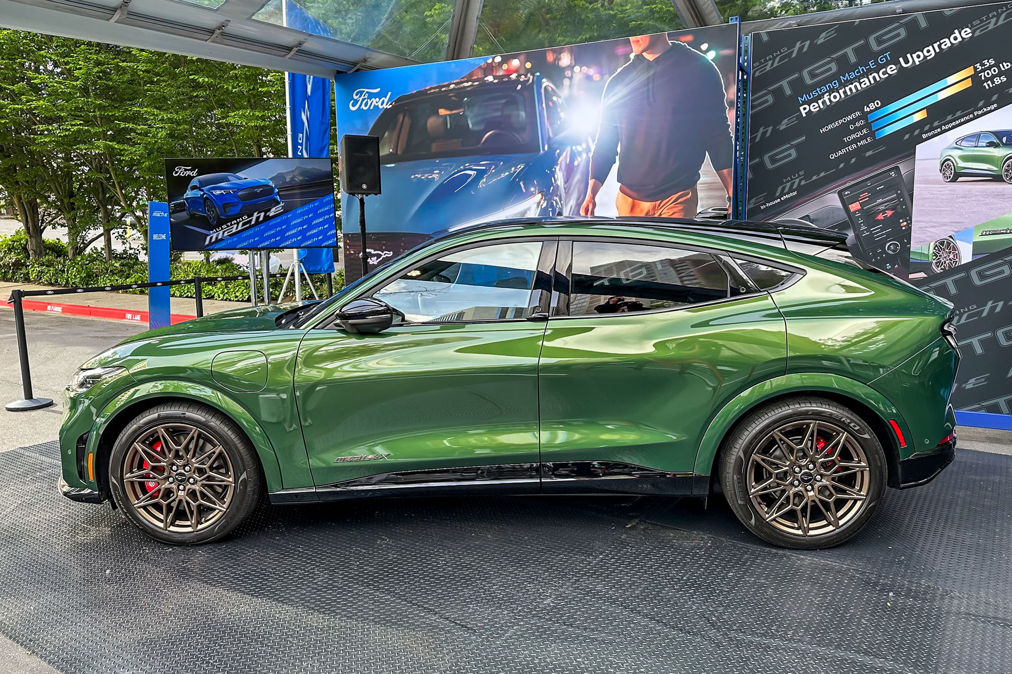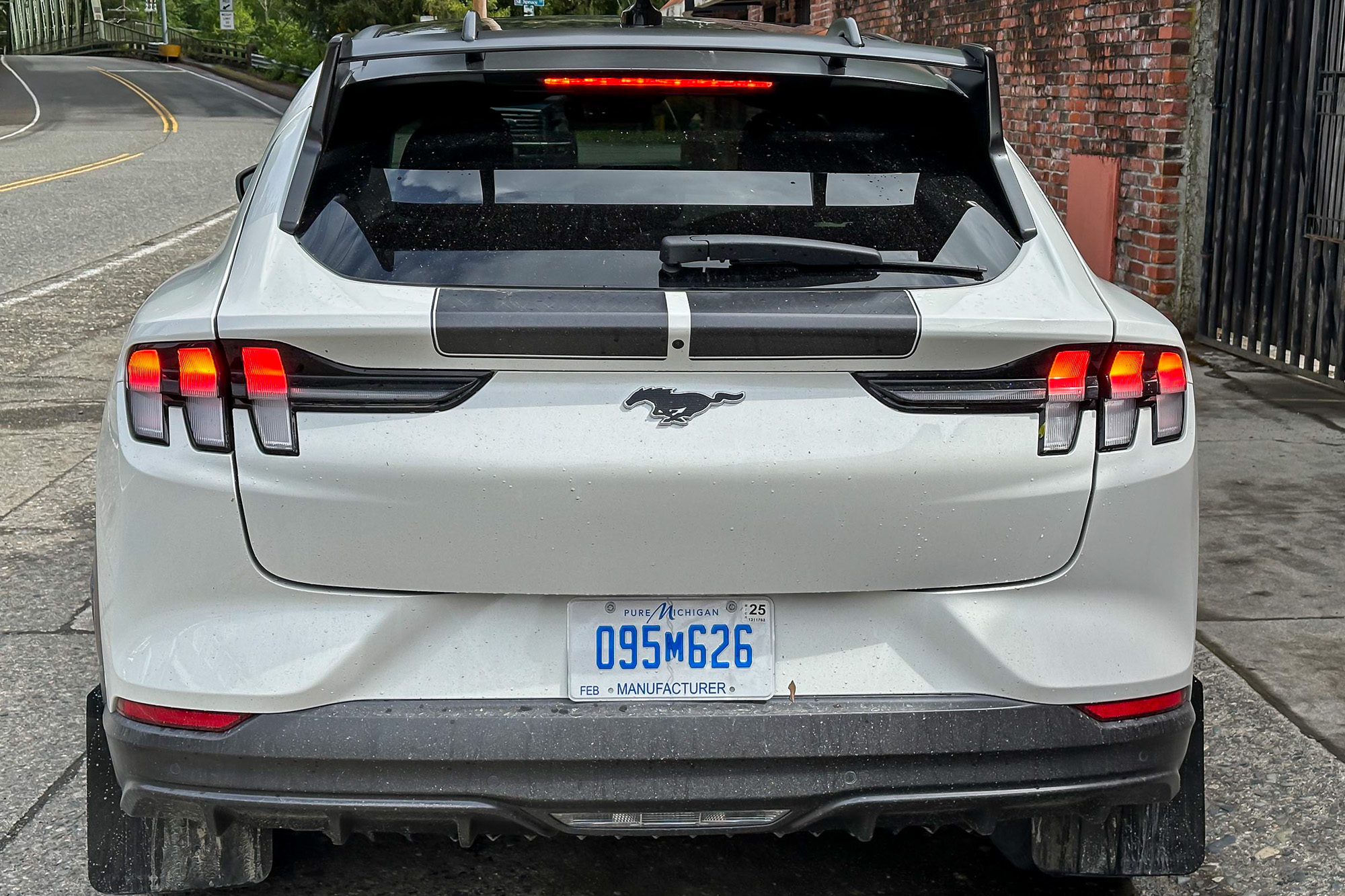 Up front, the Rally has 15.8-inch rotors, 1.5 inches bigger than those on the Mach-E Select and Premium packages. The rear gets single-piston calipers and 12.4-inch rotors.