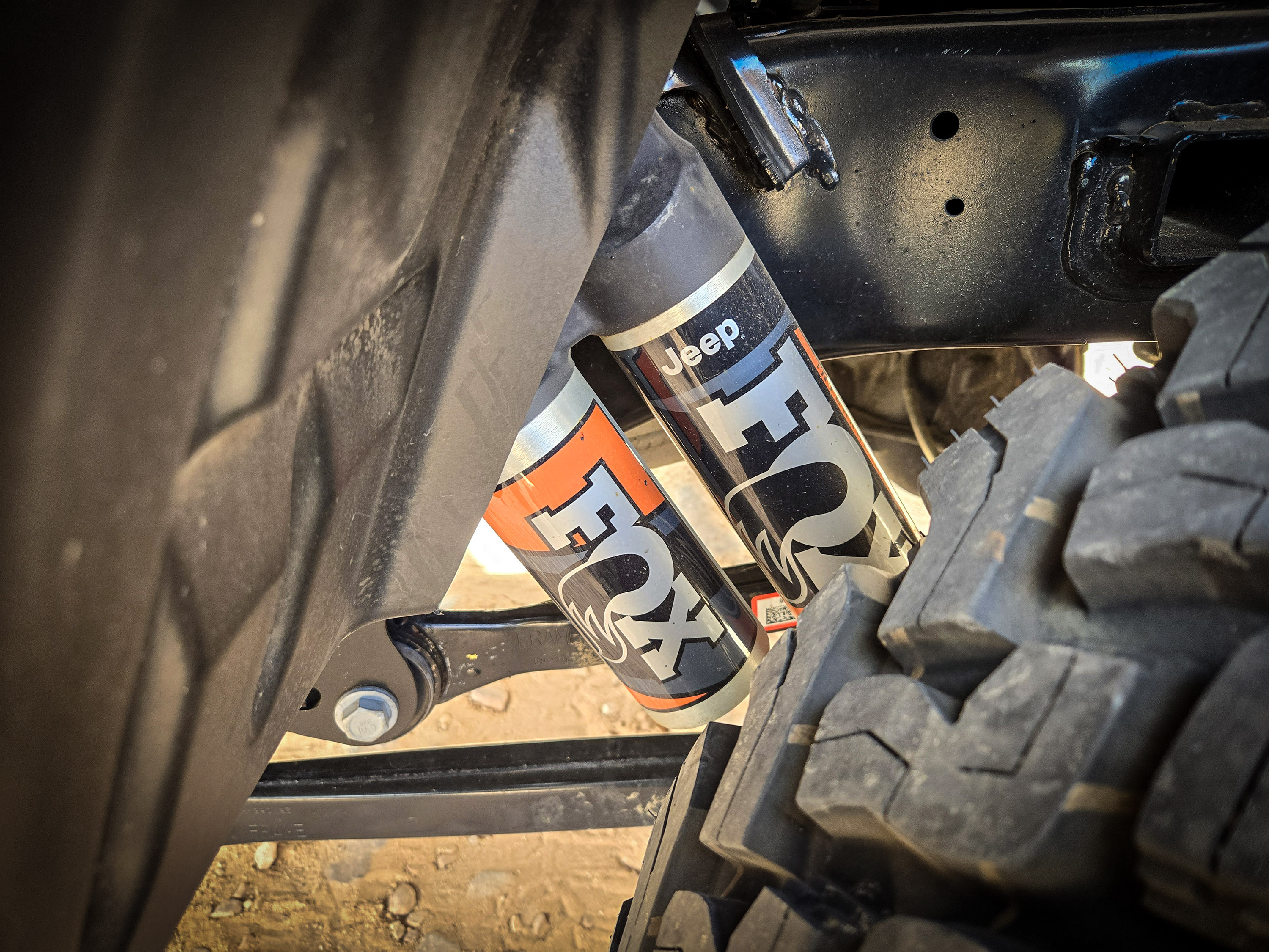 After tackling the technical off-road sections, I took the Mojave Gladiator into its element: higher-speed sandy desert segments. Gladiator Mojaves are equipped with FOX front hydro jounce bump stops, which act as a second shock absorber. They prevent the front axle from bottoming out providing a smoother, more controlled ride over rough terrain, especially at speed.