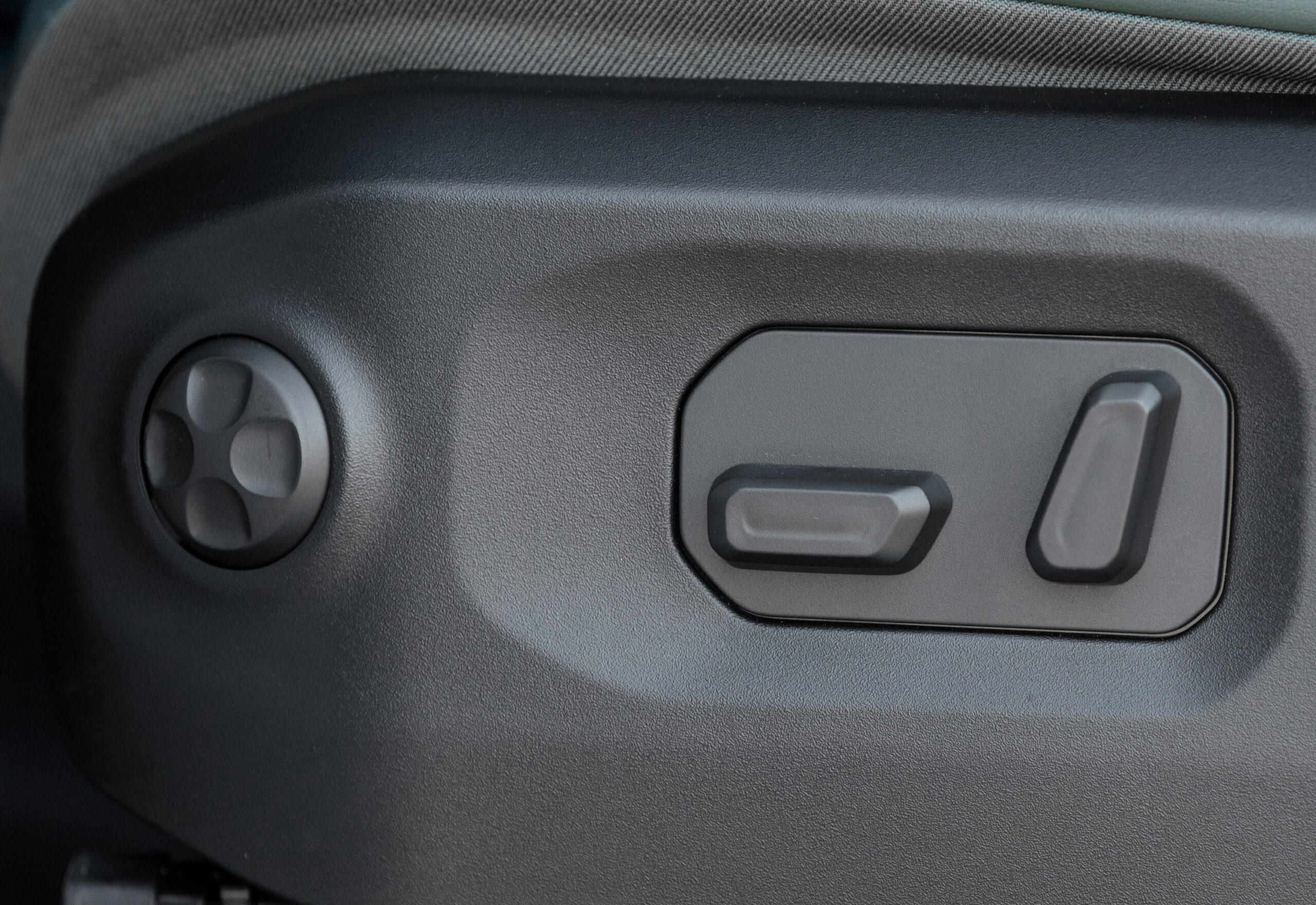 One of the things everyone is talking about with the new Wrangler is that for the first time ever, you can order one with power-adjustable front seats. The available 12-way power-adjustable front seats offer heat — but not cooling/ventilation. They are the same shape and style that we’re accustomed to in the Wrangler. The adjustments are great, with bottom cushion tilt control and a multiway lumbar adjustor.