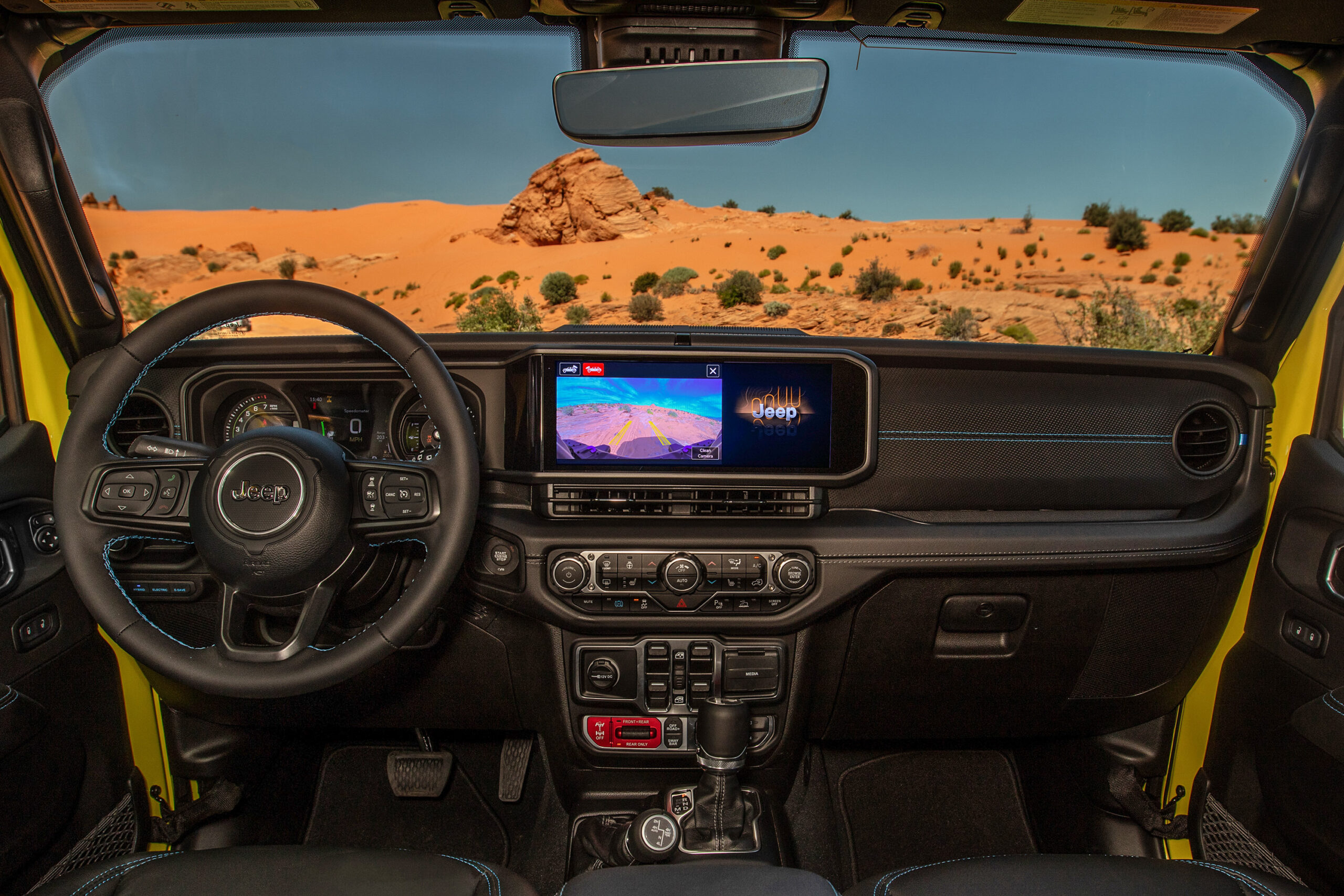 - Infotainment: 12.3" touchscreen w/Uconnect 5, wireless Apple CarPlay & Android Auto, Alexa Integration, optional: TomTom nav, Trails Offroad integration