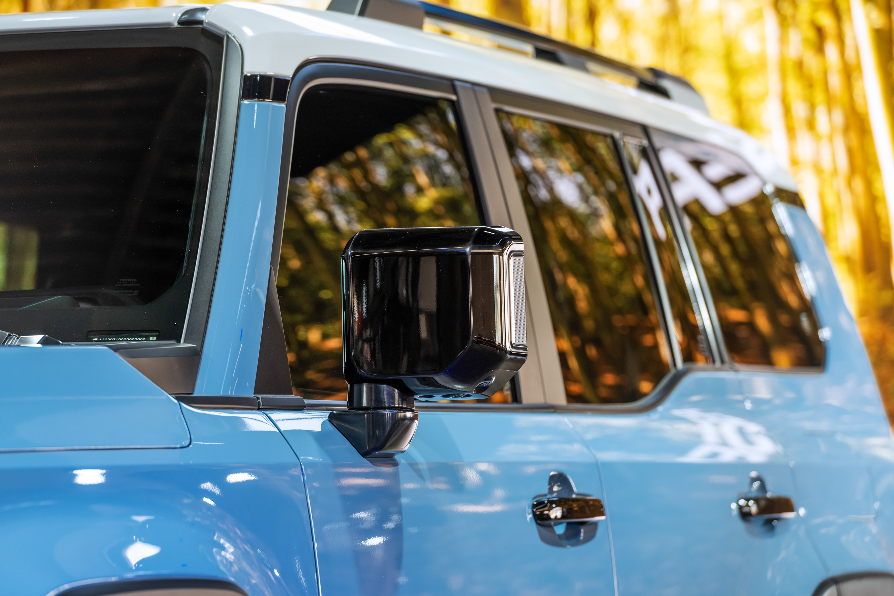 The 2024 Land Cruiser is a combination of styling cues from a wide range of Land Cruisers of the past and current Toyota styling. The rectangular headlights are reminiscent of the FJ62, and the round headlight option is a throwback to the FJ40. The rear has a lot of 70 Series in it while the side mirrors are very FJ Cruiser.