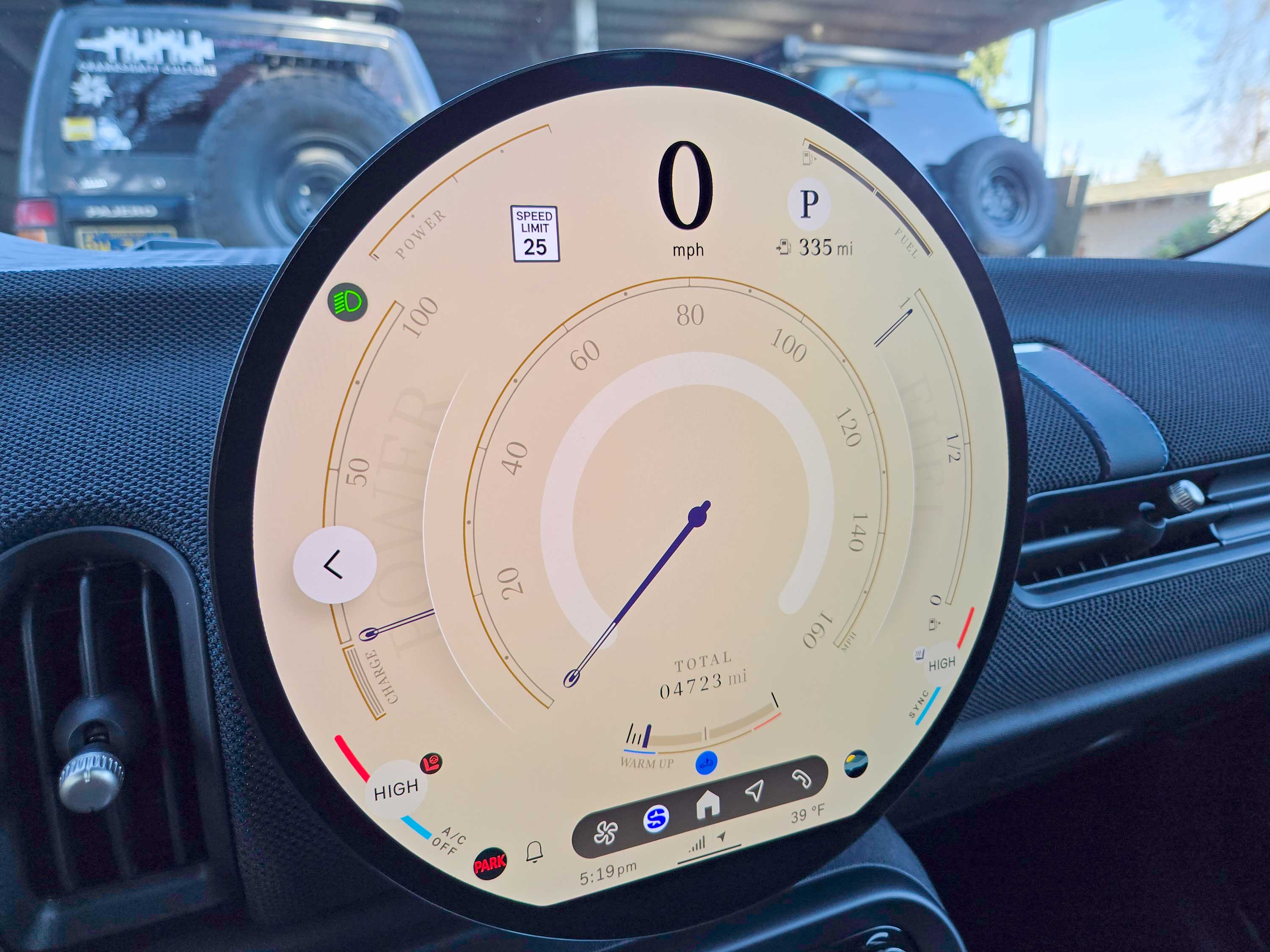 For instance, you can select Eco mode, or a gauge cluster that simply looks like an old-timey dial. These changes are mimicked by the retractable heads-up display — yes, you can disable it.