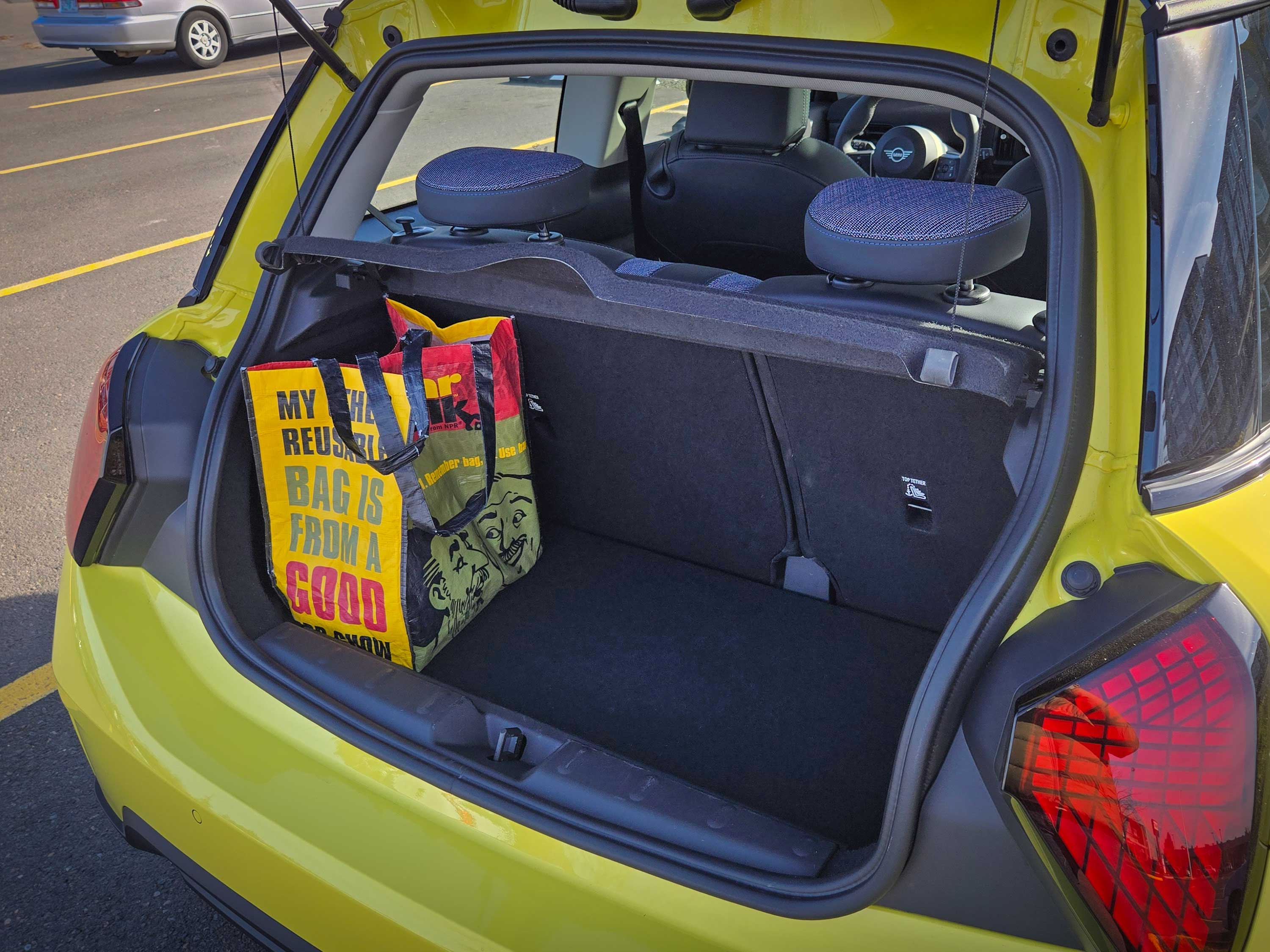 From the round headlights (with illuminated halos) to the overall square hatchback shape, the car retains styling cues from the original 1959 BMC Mini. The restyled semi-triangular taillights show part of the Union Jack flag, too — despite the car’s German assembly. The car is available with or without a black roof. Ours also had twin sunroofs.