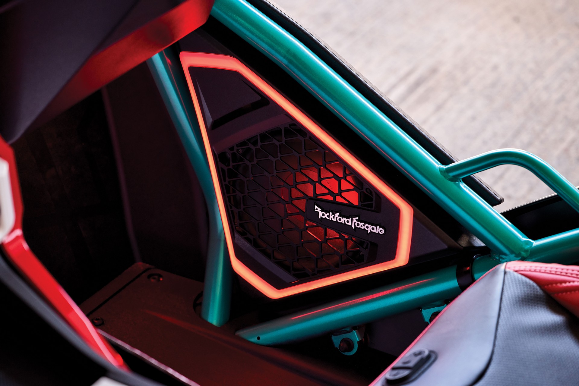 An interior light kit from XKGlow lights up the Slingshot. It has lights in the footwells, under the seats, in the side storage compartments, and on the center console. With the Slingshot LED phone app, you can set different lighting zones, set colors, and add music sync and strobe effects — while you’re parked, of course.
