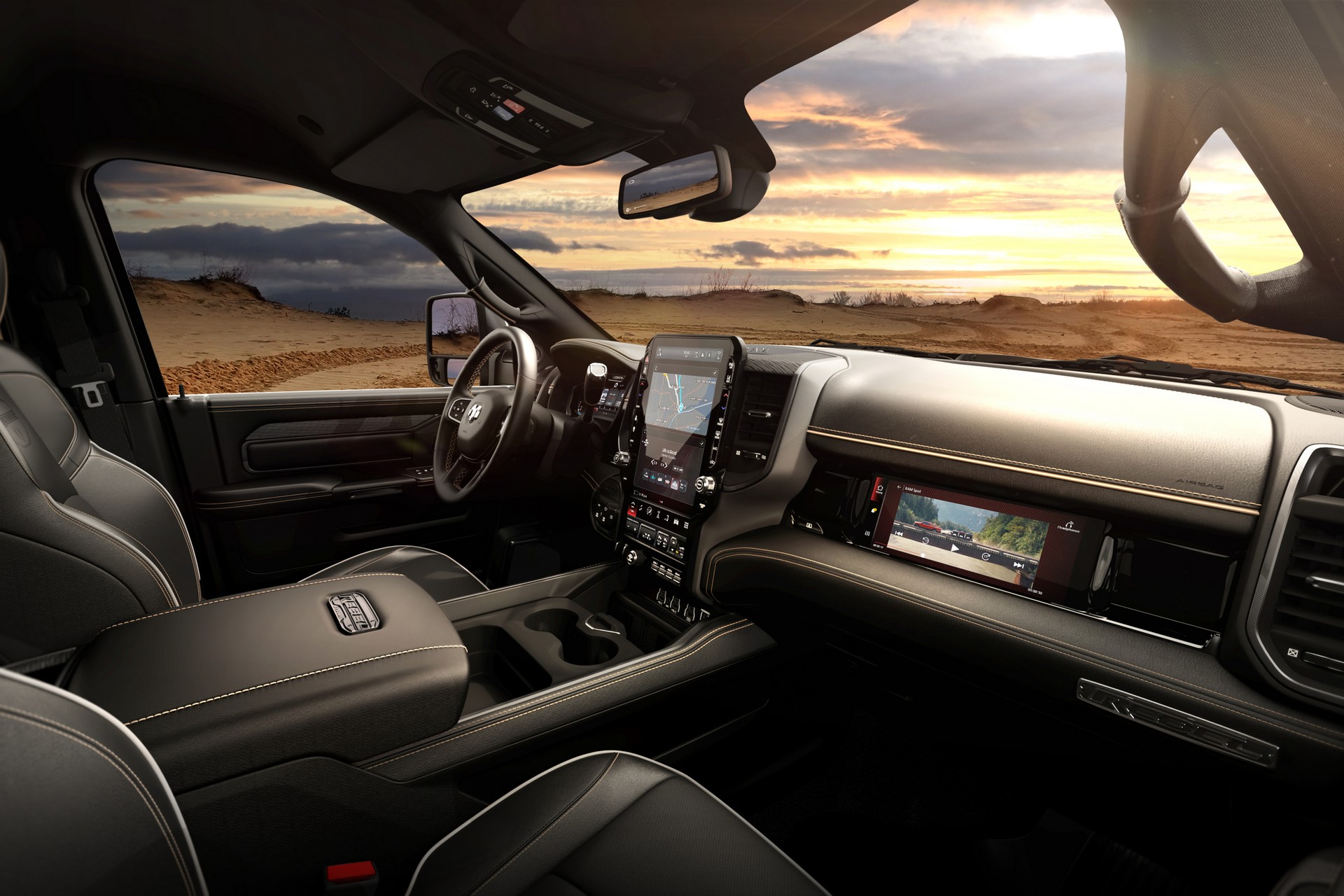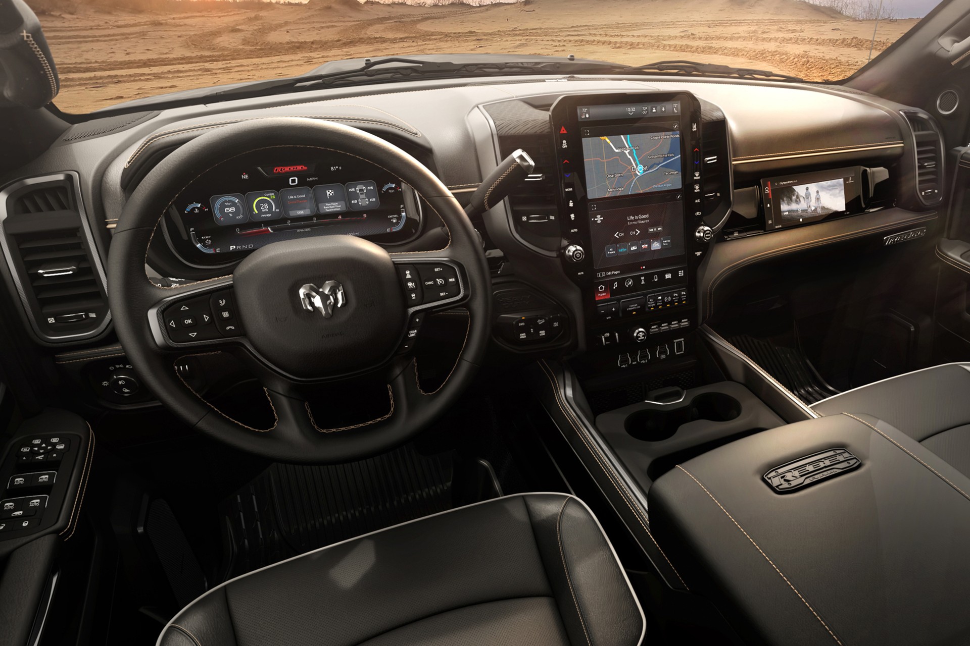 The 2025 Rams also give the person sitting in the front passenger seat an optional 10.25-inch-wide monitor built into the dash above the glovebox to provide the same opportunities. That passenger display also integrates with smartphones, so map routes and other information can be shared with the center display for the driver to see.