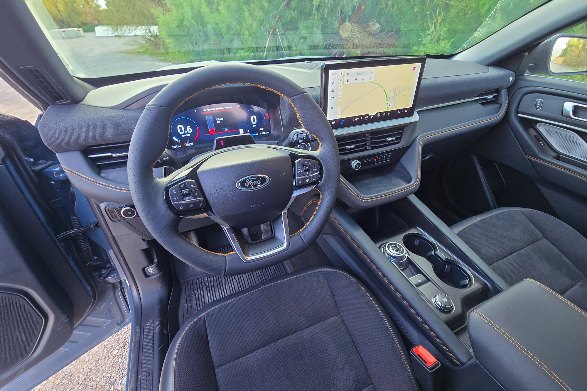 The SUV rides comfortably, with a bit of float at higher speeds and over bumps. Cornering is controlled, but there’s noticeable body roll. (If you want a canyon carving Explorer, get the ST.)