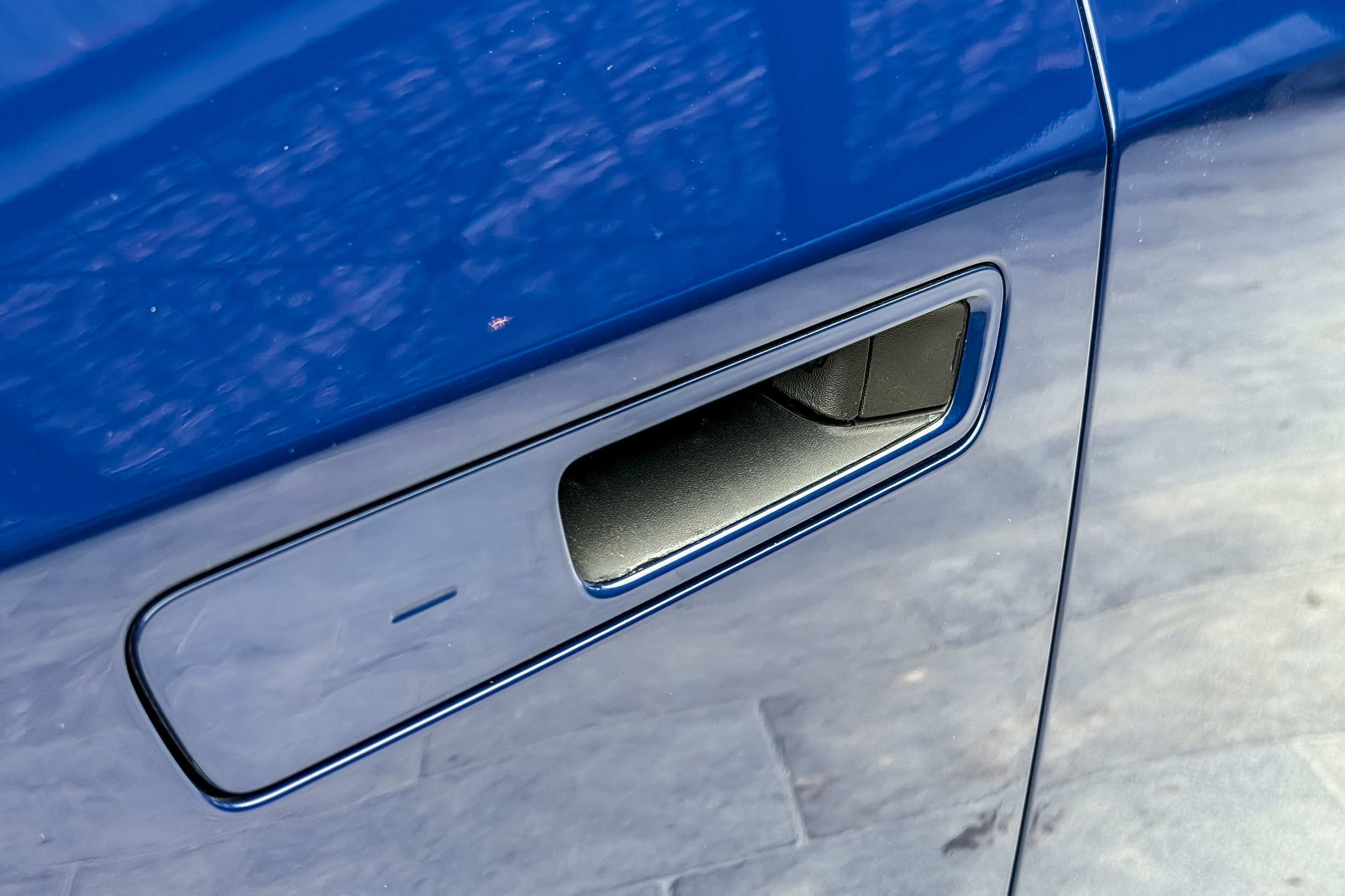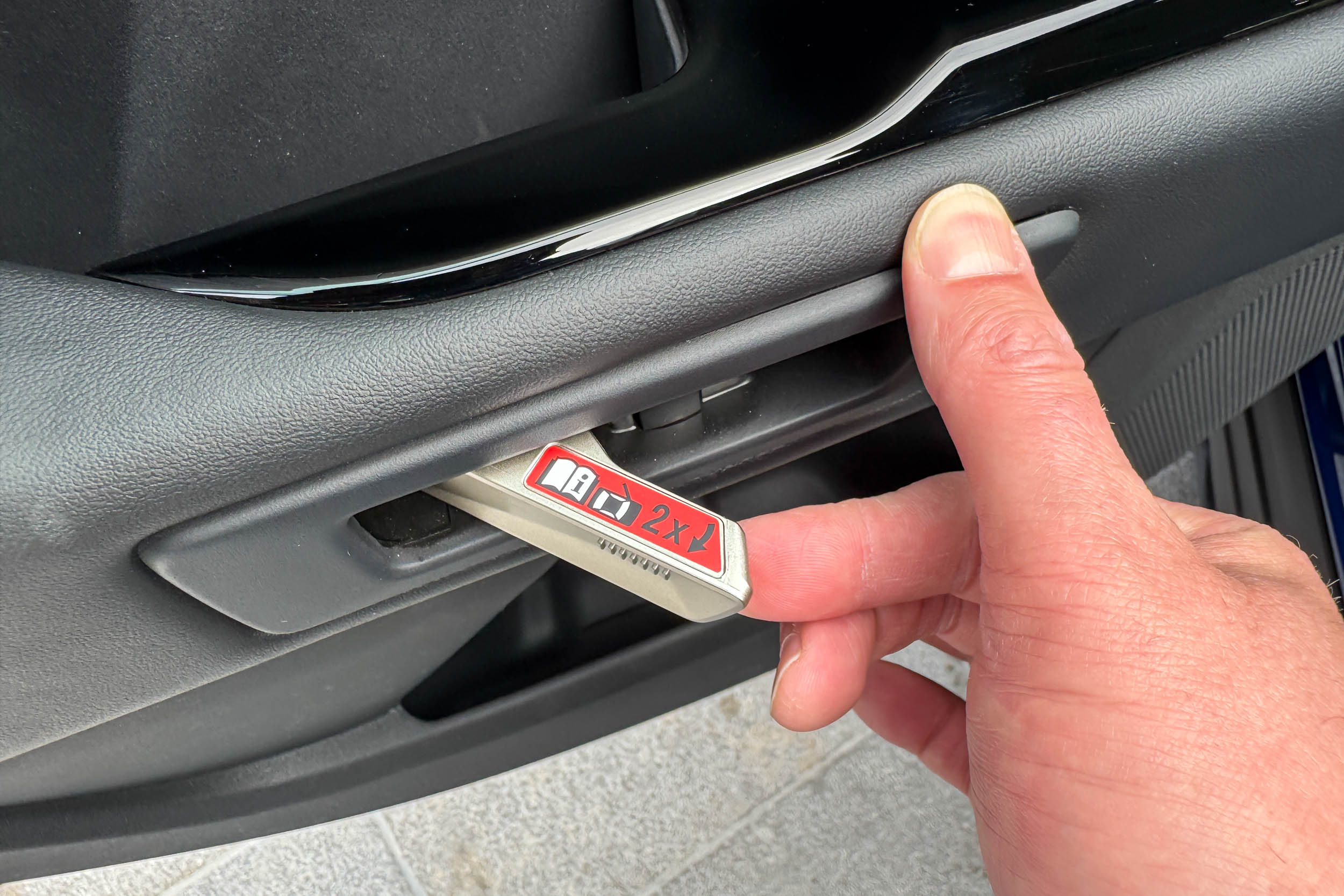 To get in, Toyota mounted “semi-flush” door handles, which sink into the door, rather than stick out. Stick your hand in the slot and push a button to trigger a solenoid to open the door. But don’t worry, Toyota built in a mechanical door opener, if you were to lose power while inside the vehicle.