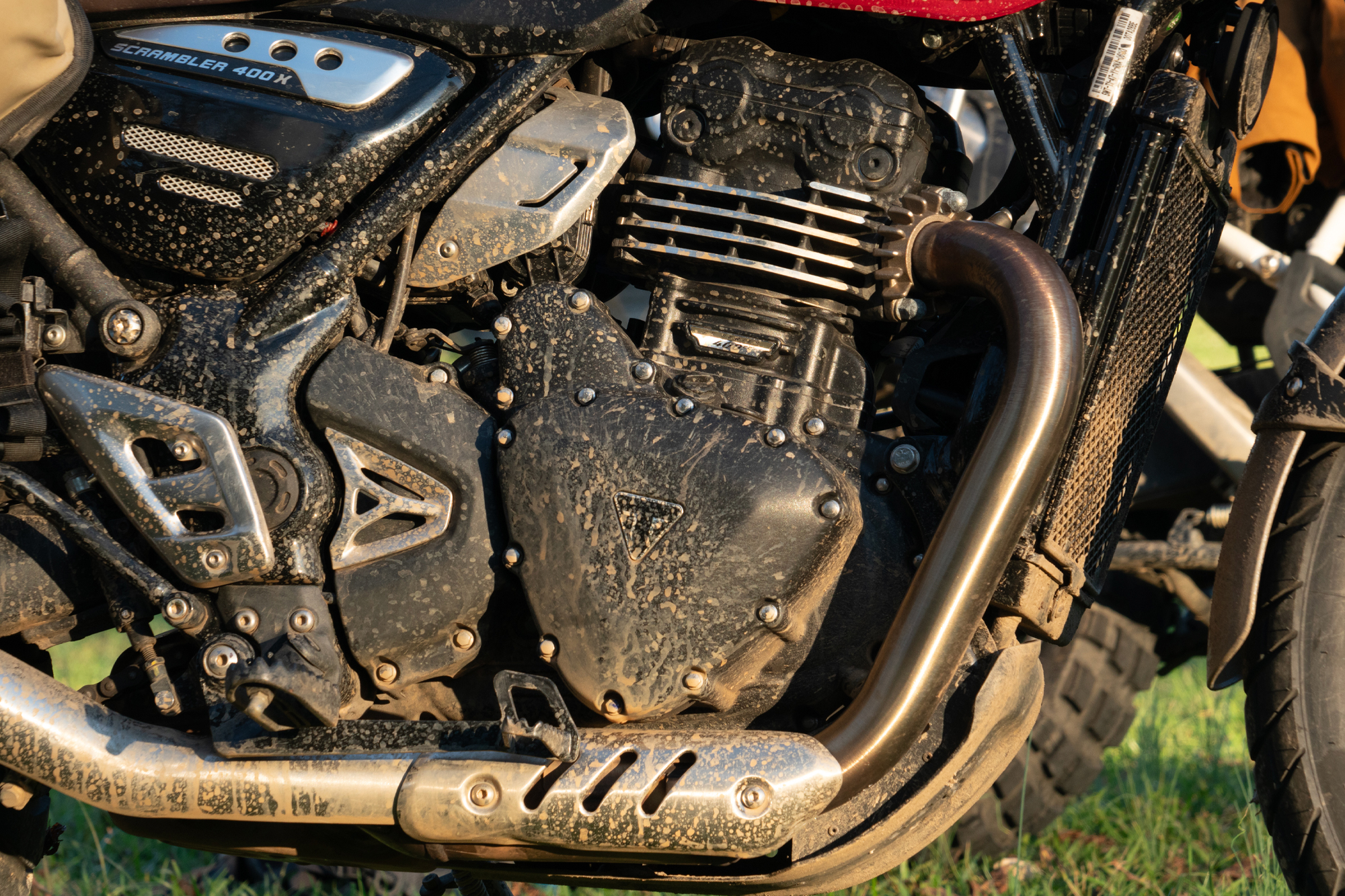 The Scrambler 400 X shares plenty of parts with its Speed 400 stablemate. But Triumph made a few notable changes that were relevant to my off-road mission.