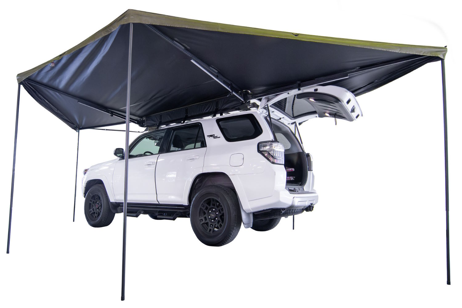For couples or those who like to travel solo, a simple side awning might do the trick. No matter what style of awning you decide on, make sure the dimensions are compatible with your vehicle. Also, ensure that the awning can be installed with either your aftermarket roof rack or factory crossbars.