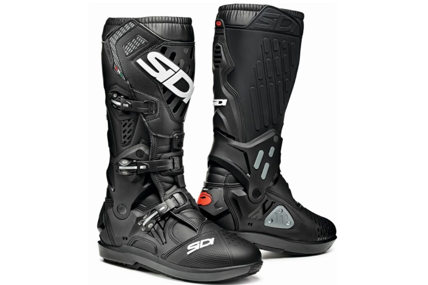 - Motocross Boots: These boots offer the pinnacle of protection, as shown in the burly build of the Sidi Atojo SRS. With their smooth outsoles and overbuilt protection, these boots are made for riding, not for walking.
