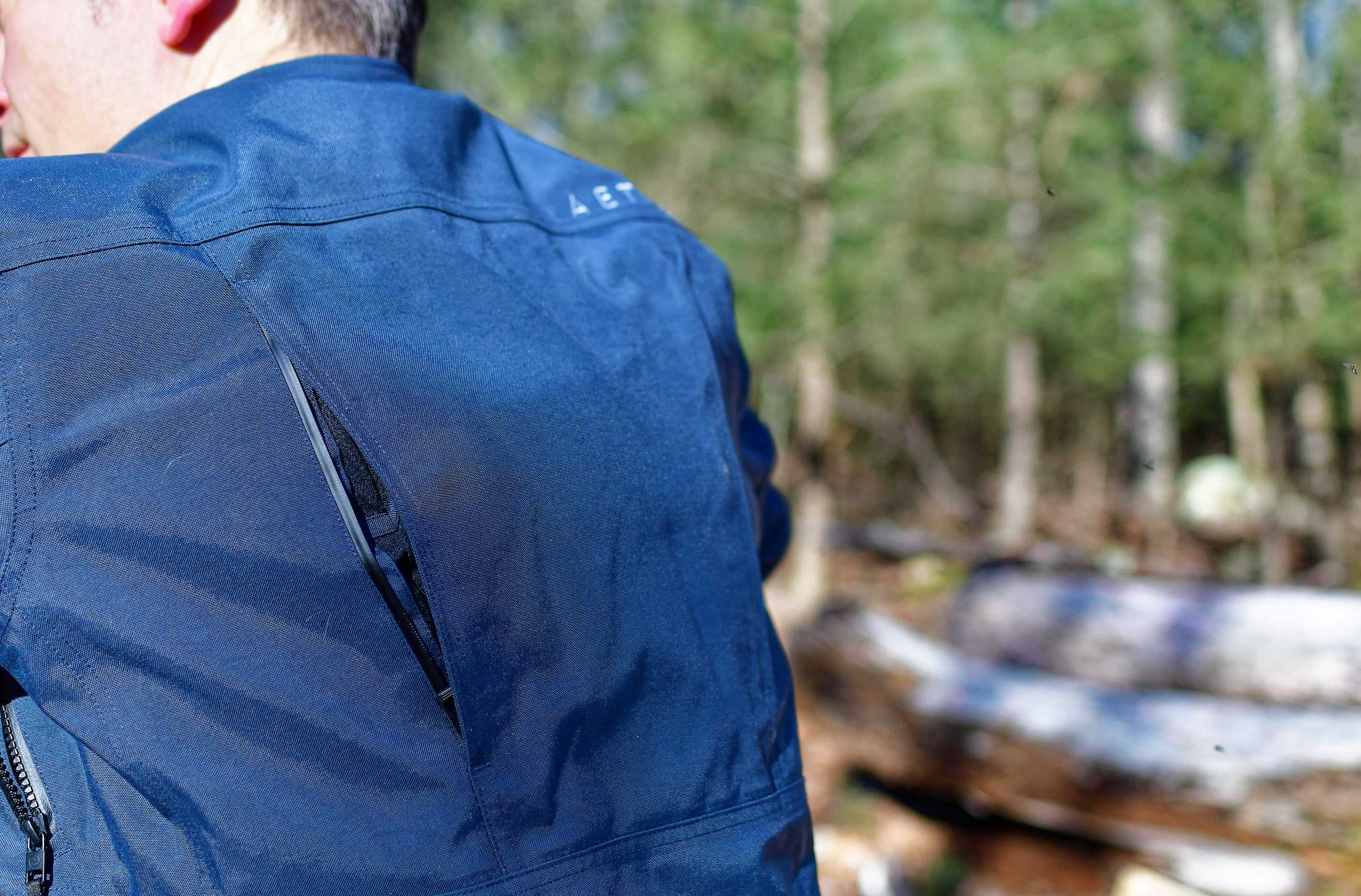Jackets with zippered pits, chest vents, and back or exit vents behind the shoulder blades like on the Aether Mulholland are great choices for breathability. Some zippers have a mesh overlay inside, including the Alpinestars AMT-10R Drystar XF Jacket and KLIM Artemis.