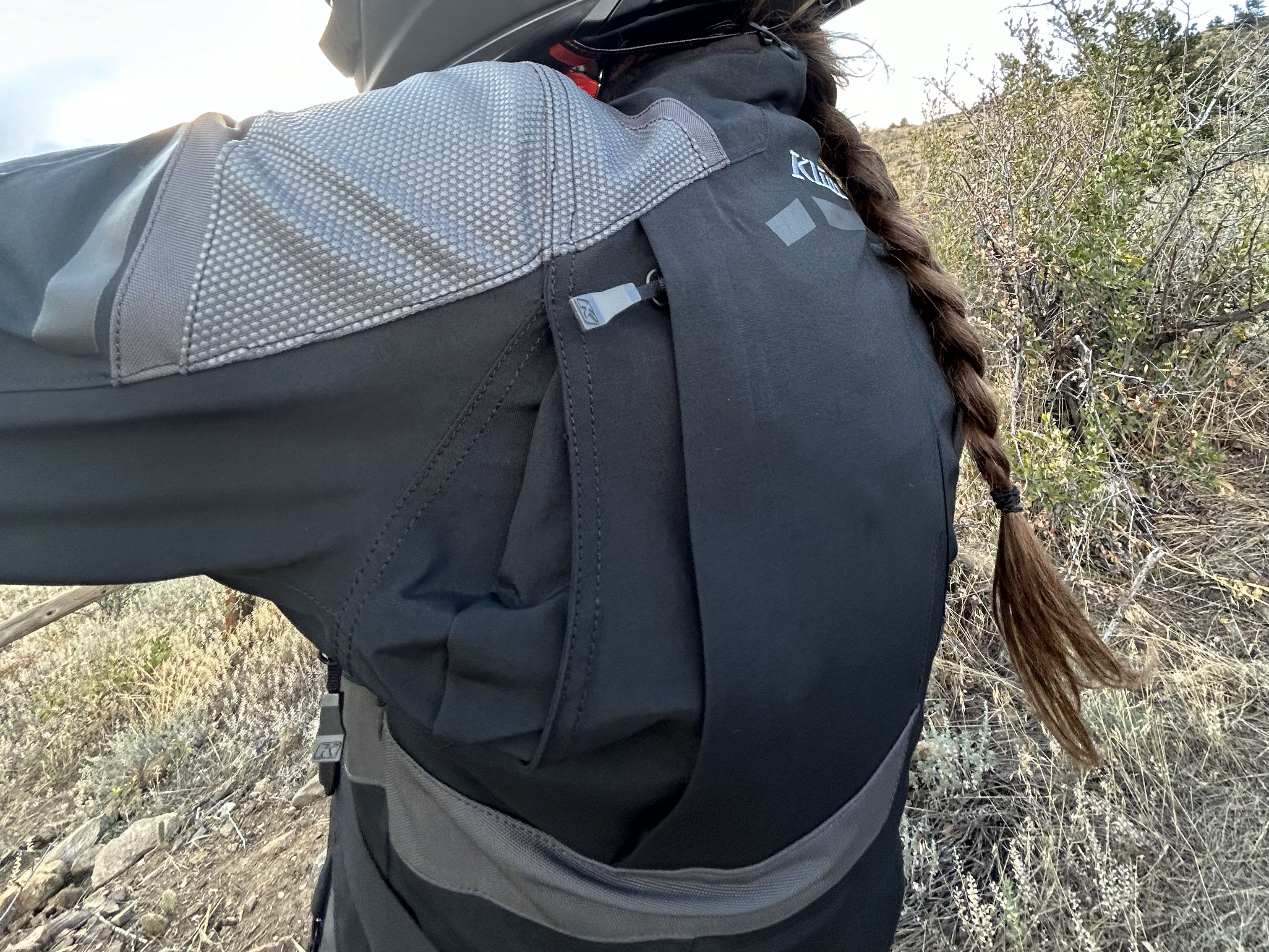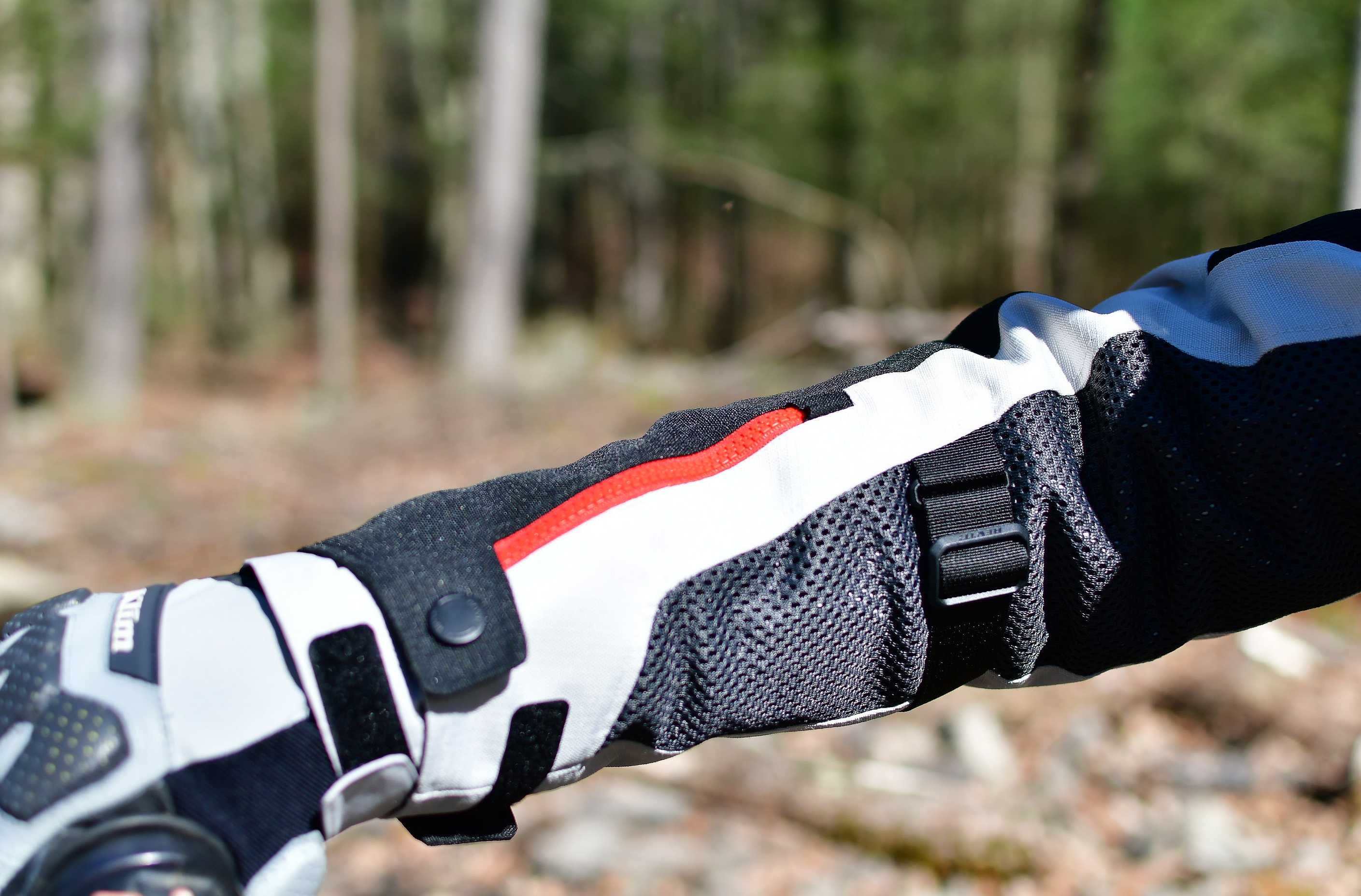 On jackets like the REV’IT! Tornado 4 H2O and KLIM Artemis, you’ll find sliding adjusters on the forearm, which cinch down the sleeves. That integrated arm belt alters the volume. When you’re gripping the handlebars, a streamlined fit can help reduce fatigue, because the fabric isn’t shifting around. An athletic fit also holds the armor at the elbows and shoulders in place during a crash.