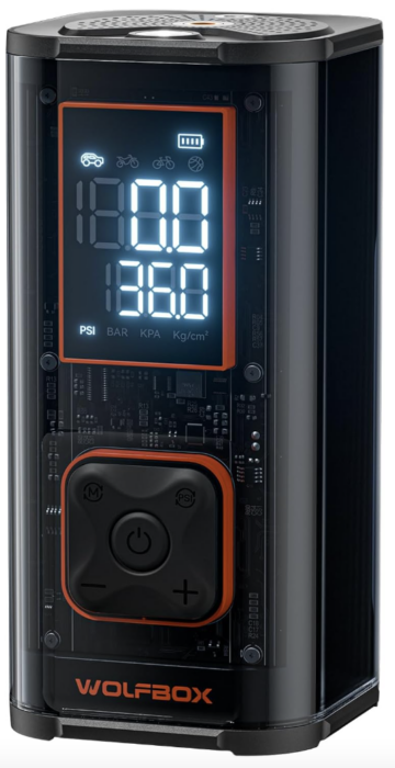 One of the standout features of this inflator is that it doesn’t require an additional battery or charger, and recharges via a standard USB-C port. Additionally, Wolfbox thought to include an 11-foot DC charging cable, meaning that you can run this inflator off a common DC accessory port as long as your car battery has a charge.