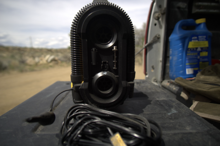 The Viair attaches to a vehicle’s 12V battery via two alligator clips and has a simple one-button operation. Since it draws directly from the vehicle’s battery, you will want to keep your car running during inflation to ensure you don’t get stuck with a dead battery. Realistically, it’s the only model in this guide that works fast enough for us to consider using it for airing down for regular off-road use.