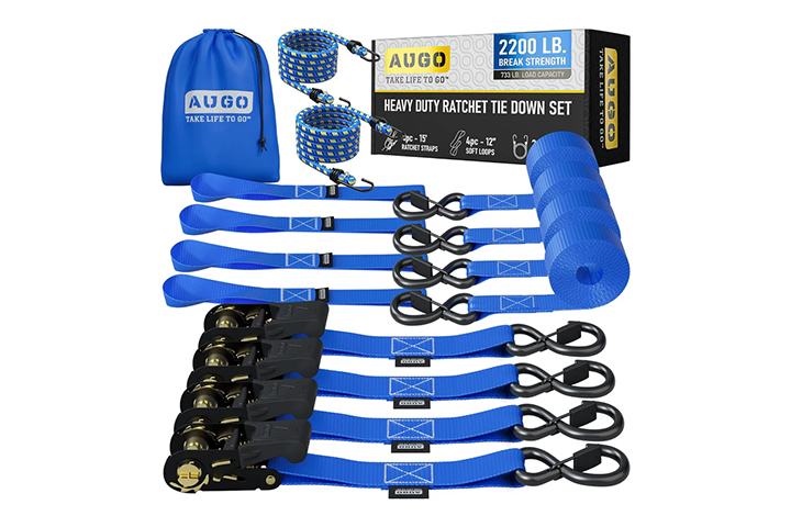 | Augo Heavy Duty Ratchet Tie-Down Straps | $30 | Polyester | 2,200 lbs. | 733 lbs. | 1” |