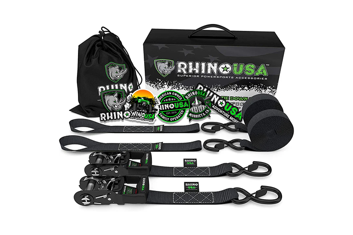 If you’re hauling a hefty load, consider snagging the Rhino Rack HD Ratchet Tie-Down Set with a 5,260-pound breaking strength.