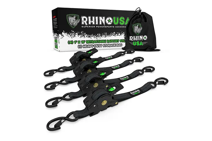 Conversely, the US Cargo straps do not have rubberized handles and do not come with soft shackles or a storage bag. And the Rhino Retractables are a bit on the bulky side.