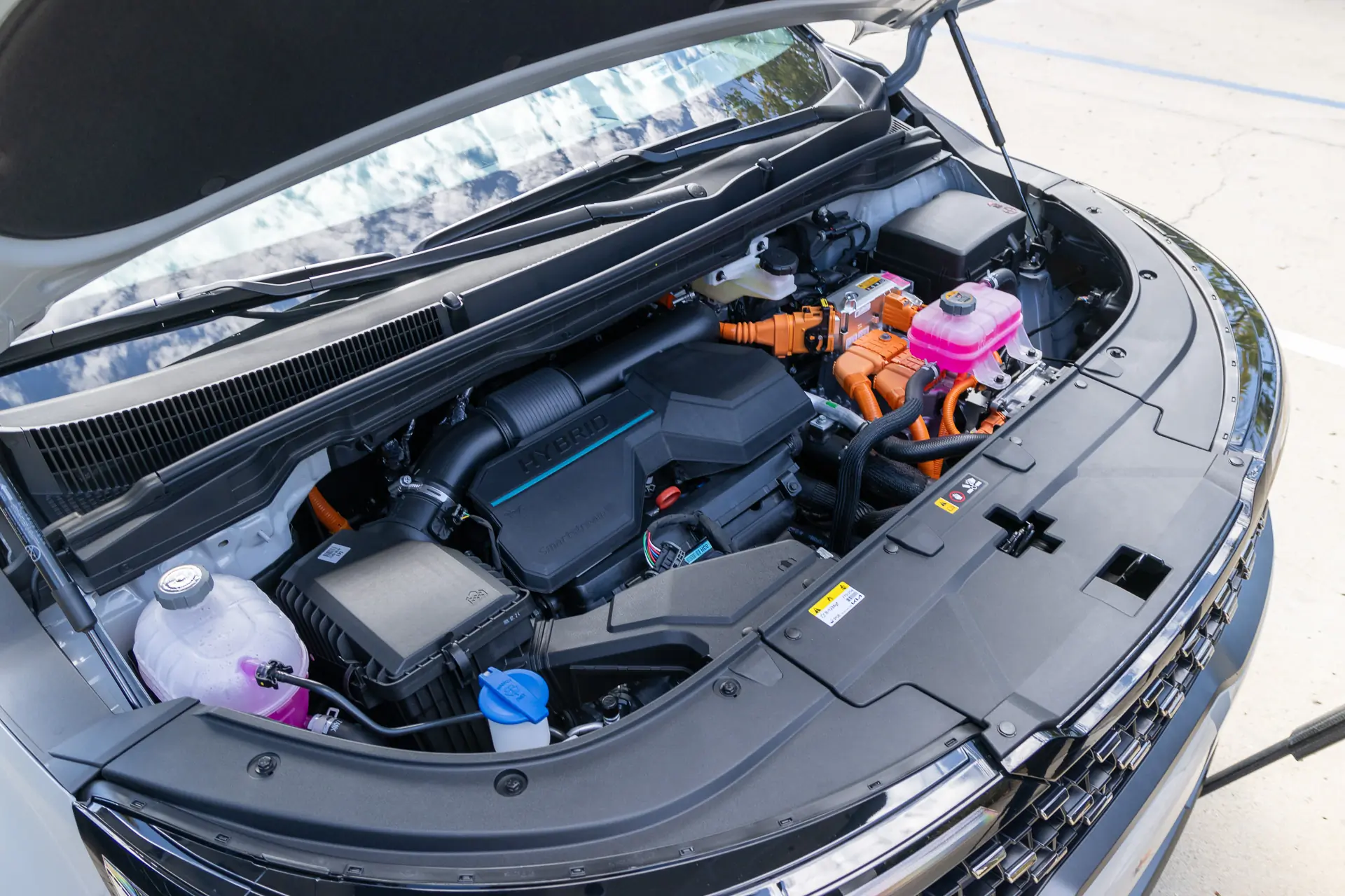 Total output from the hybrid system is 242 horsepower and 271 pound-feet of torque, up from the 227 horses and 258 pound-feet of Kia’s other big hybrids. It can tow 2,500 pounds, and the EPA estimates it will get 34 mpg city, 31 highway, and 33 combined.