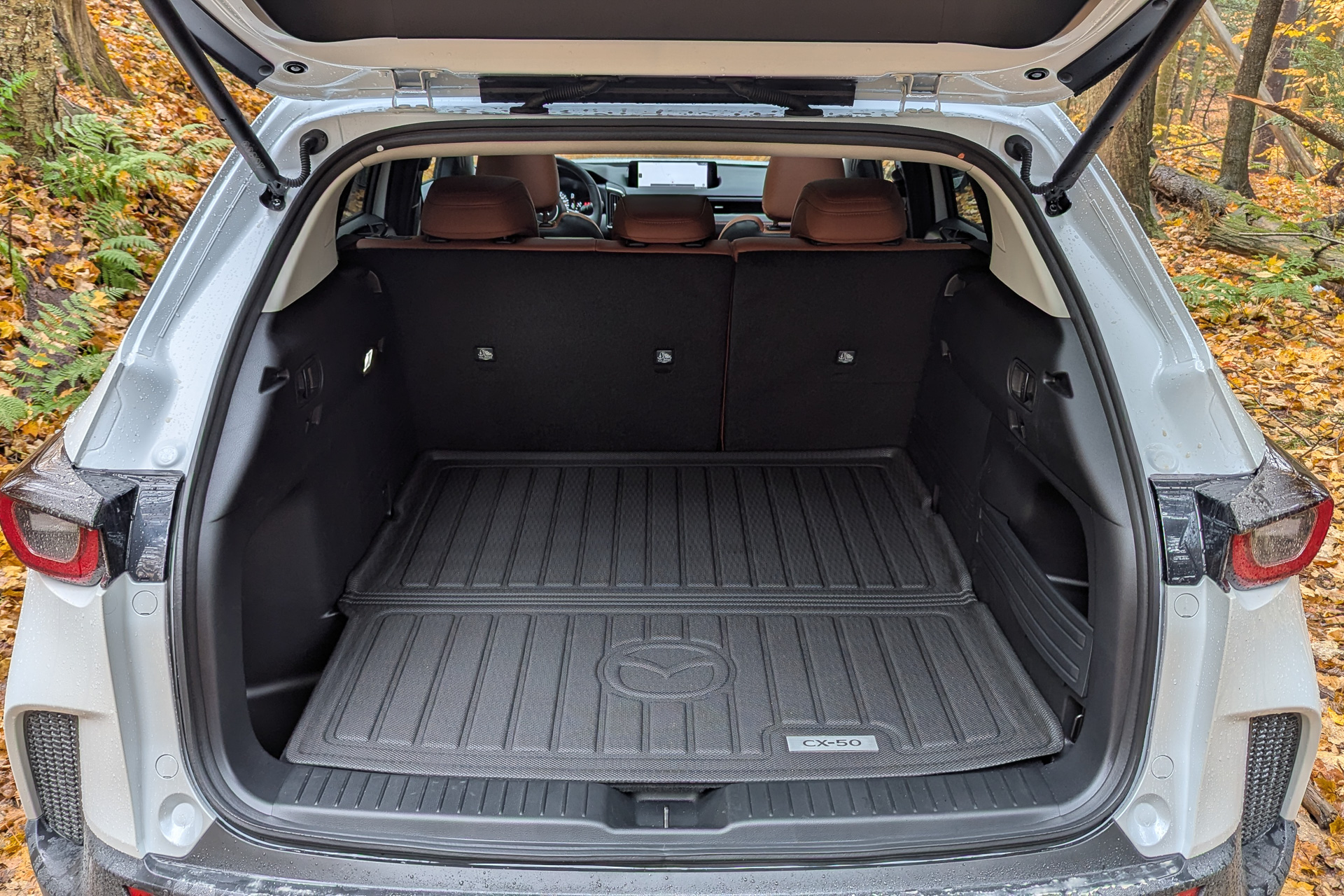 Everything else is standard CX-50, and that means lots of space. The CX-50 is wider than the CX-5, and so it offers more elbow room for everyone as well as more space for splayed knees for the driver. Headroom is also generous.