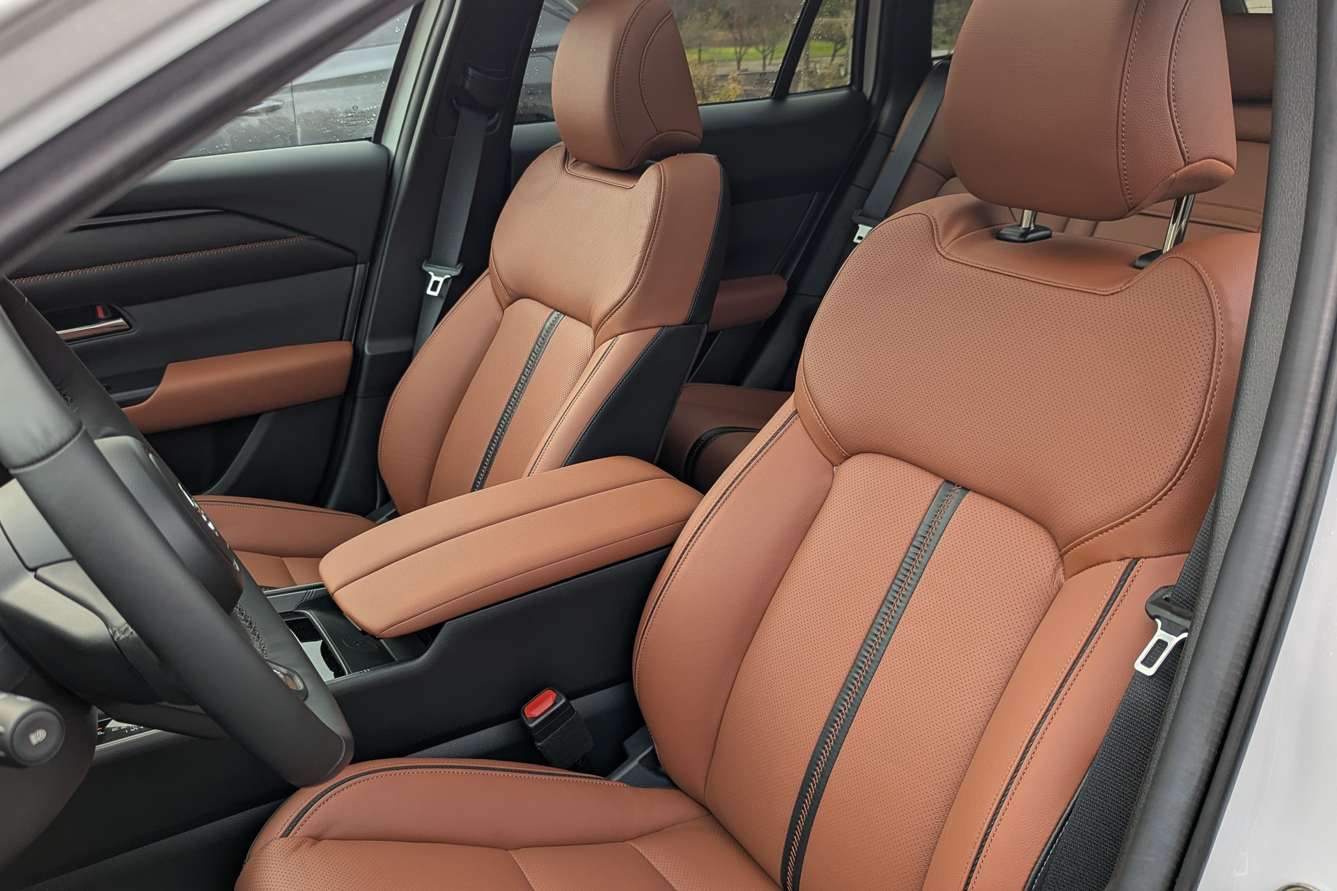 You’ll find some lovely-looking seats in the CX-50, but that doesn’t mean you’ll find comfort. Mazda likes its seat foam firm and this model is no different. It also has a short seat bottom, so if you have long thighs like me, you might find the support there lacking. Usually some tilt adjustment to bring up the front of the bottom cushion remedies this, but the Mazda doesn’t have enough range of movement to fix it.