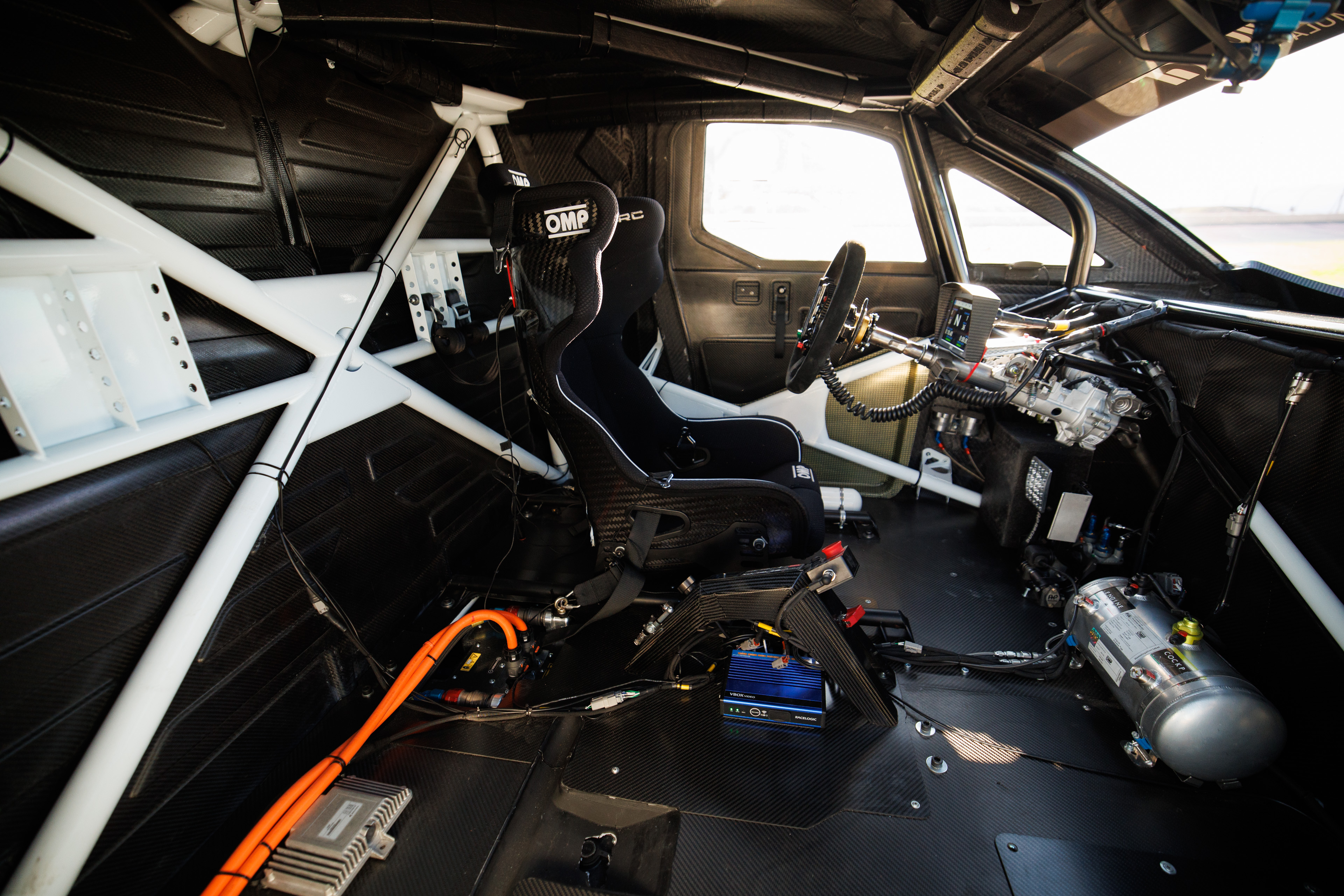 The SuperVan 4.2 is a 1,400-horsepower three-motor AWD electric race vehicle. Not only does it have massive aero, which can create 4,400 pounds of downforce, but it also features loads of carbon fiber body parts, carbon ceramic brakes, magnesium-forged wheels, and full race tires.