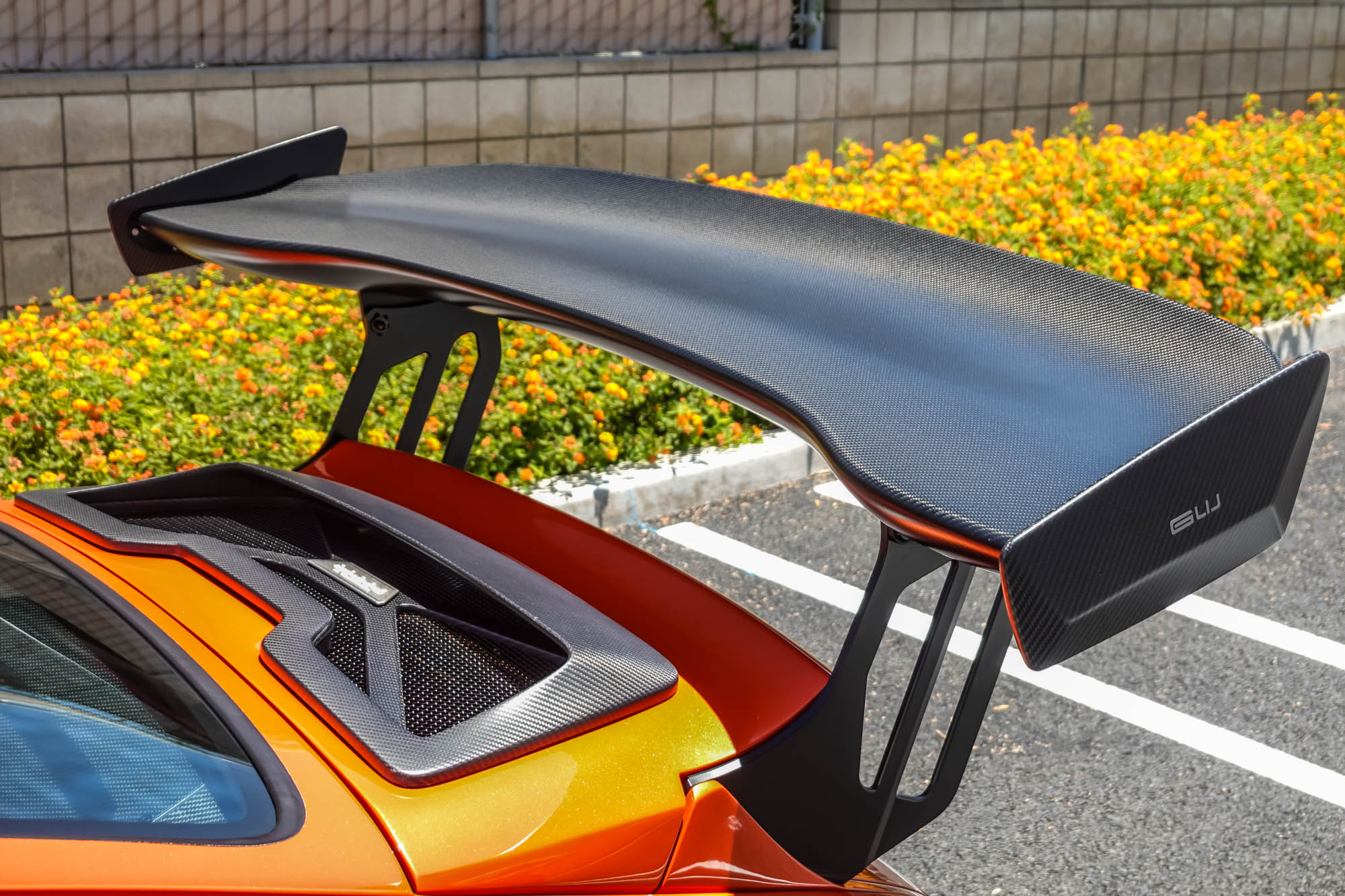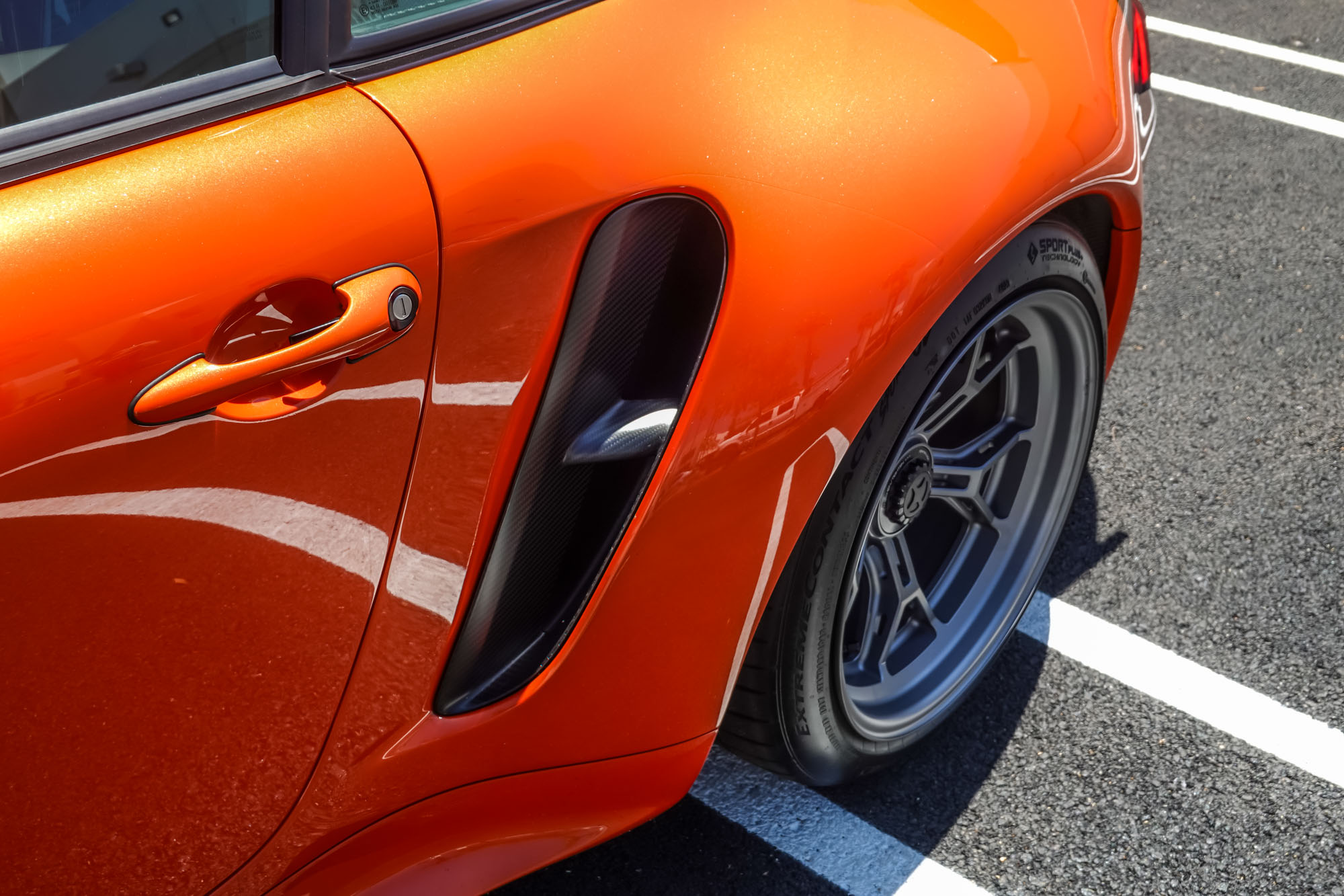 For the Turbo, Gunther uses a double-bubble roof (out of carbon) and when I drove it, a high-downforce wing that bolts directly to the chassis (also carbon, a theme develops). Without a solid total for downforce the wing generates, rest assured that it needed chassis mounting to prevent from literally crushing the (carbon) engine cover.